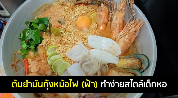 มาม่าต้มยำมันกุ้งหม้อไฟ (ฟ้า) ยกทะเลใส่หม้อทำง่ายสไตล์เด็กหอ