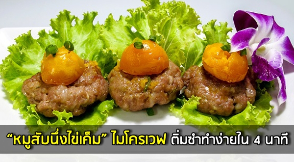 หมูสับนึ่งไข่เค็ม สูตรไมโครเวฟ เมนูติ่มซำทำง่ายใน 4 นาที