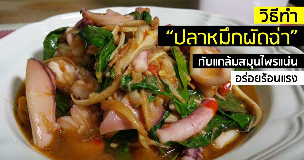 ผัดฉ่าปลาหมึก เมนูกับแกล้มสมุนไพรแน่นอร่อยร้อนแรง