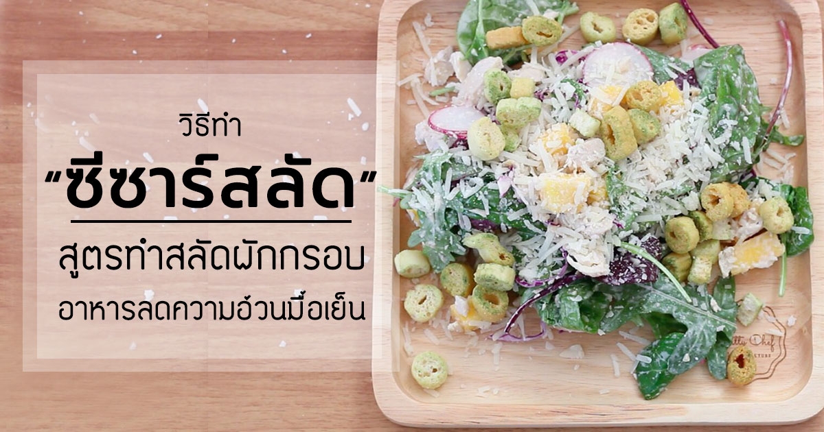 ซีซาร์สลัด ใส่มะม่วงสุก สูตรทำสลัดผักกรอบอาหารลดน้ำหนักมื้อเย็น