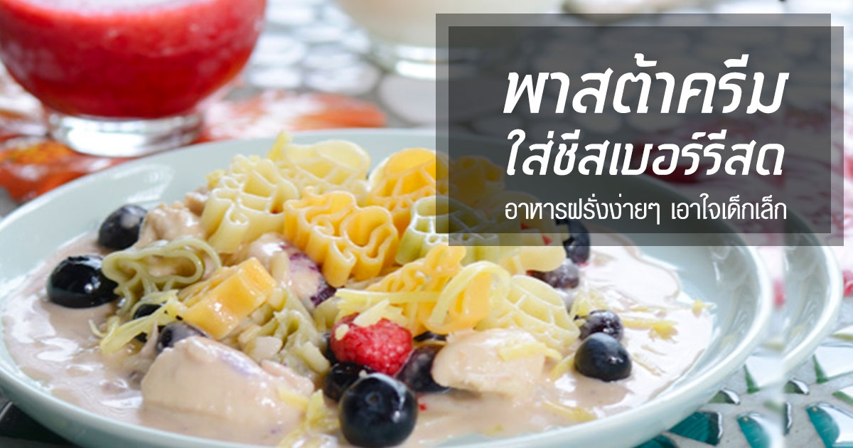 พาสต้าครีมชีสเบอร์รีสด อาหารฝรั่งง่าย ๆ เอาใจเด็กเล็ก
