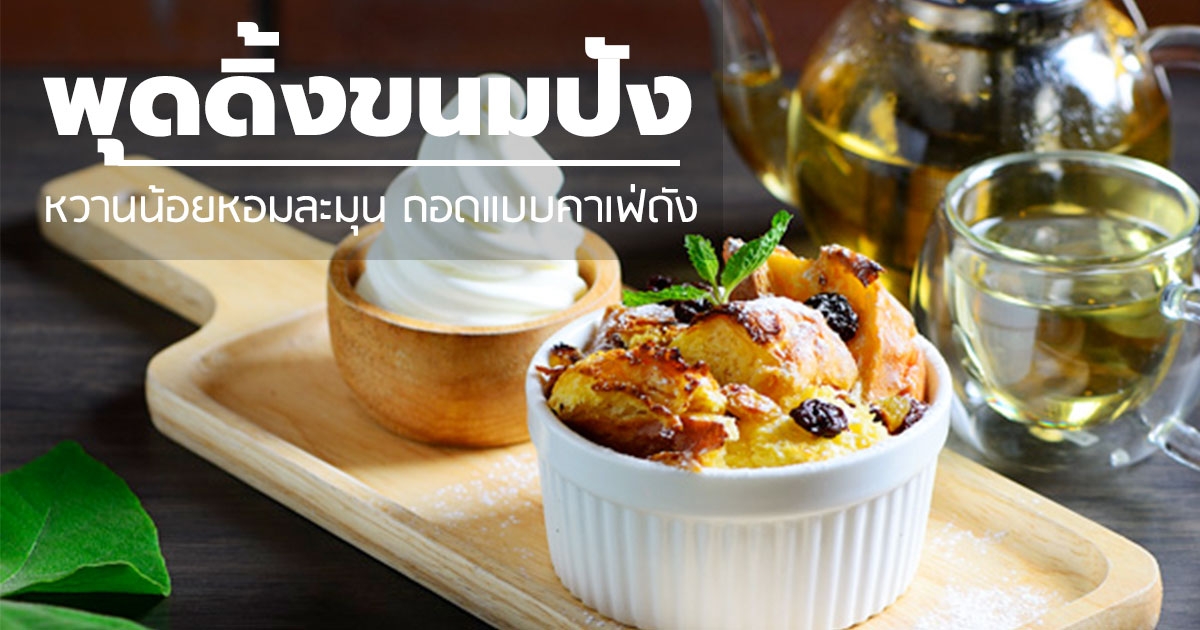 พุดดิ้งขนมปัง สูตรหวานน้อยหอมละมุนถอดแบบคาเฟ่ดัง
