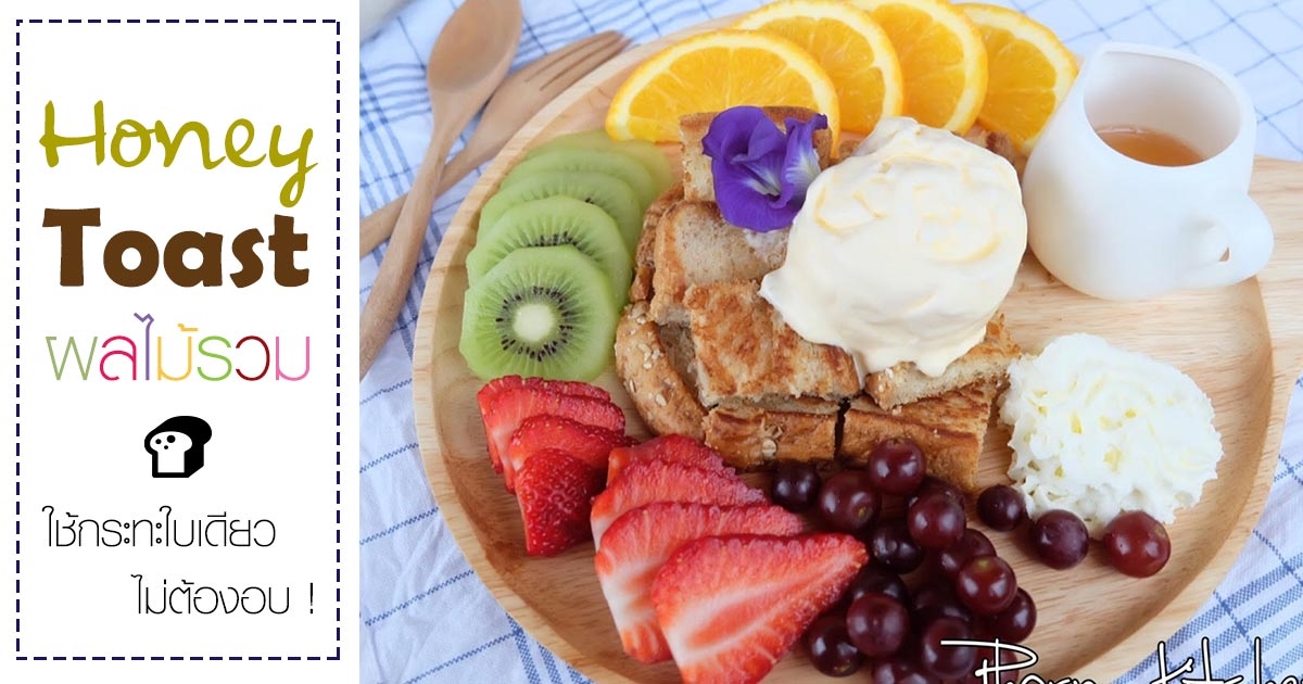ฮันนี่โทสต์ผลไม้รวม สูตรทำง่ายใช้กระทะกรอบนุ่มชุ่มฉ่ำไม่ต้องอบ