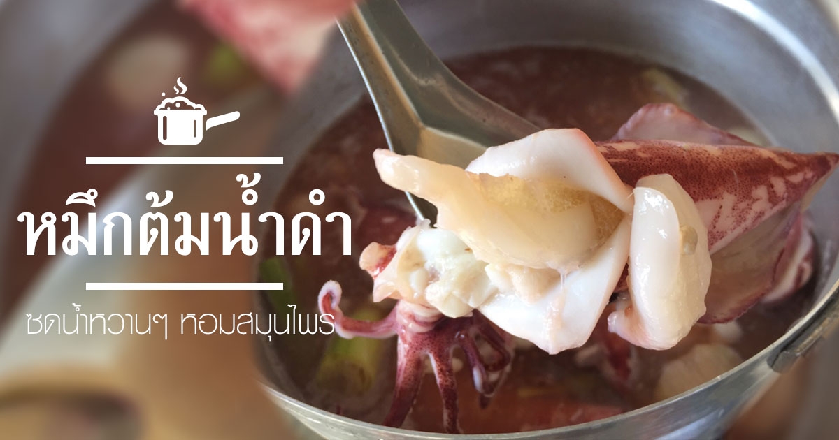 หมึกต้มน้ำดำ ปลาหมึกต้มซดน้ำหวาน ๆ กลิ่นหอมเครื่องสมุนไพร