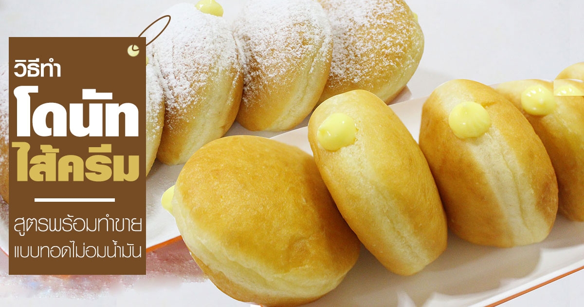 โดนัทไส้ครีม สูตรทำขายแบบทอดไม่อมน้ำมัน