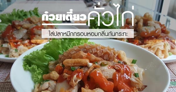 คั่วไก่ ก๋วยเตี๋ยวผัดใส่ปลาหมึกกรอบหอมกลิ่นก้นกระทะ พร้อมสูตรหมักไก่นุ่ม