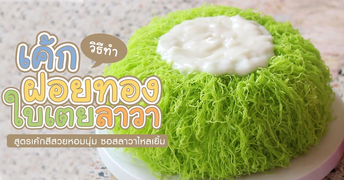 เค้กฝอยทองใบเตยลาวา สูตรเค้กสีสวยหอมนุ่มสอดไส้ซอสลาวาไหลเยิ้ม