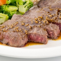 สเต๊กเนื้อซอสกระเทียม อาหารฝรั่งกลิ่นหอมเย้ายวน