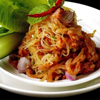 ลาบวุ้นเส้นแหนมหนังหมู อาหารไทยรสแซ่บพร้อมเสิร์ฟ