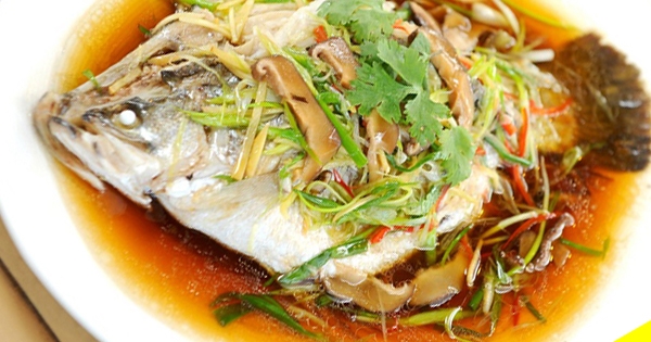 ปลากะพงนึ่งซีอิ๊ว หอมซีอิ๊วเนื้อปลานุ่มอร่อย