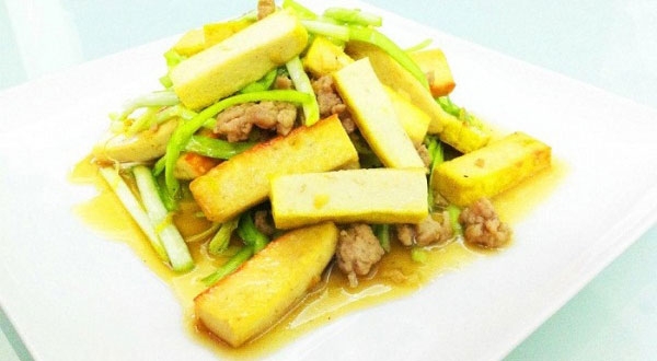 ผัดกุยช่ายขาวเต้าหู้หมูสับ เครื่องเคียงข้าวต้มสูตรเด็ด