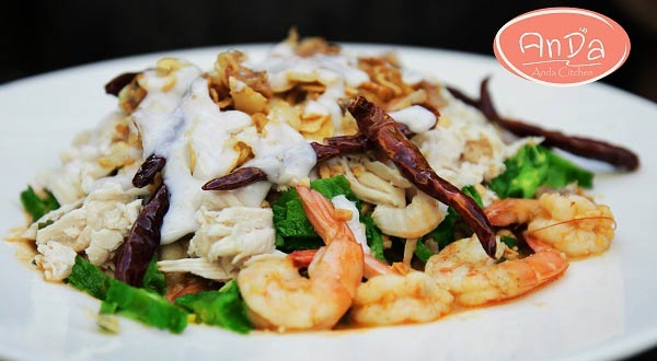 ยำถั่วพูกุ้งสดราดกะทิสด เมนูยำกรุบกรอบ รสกลมกล่อม