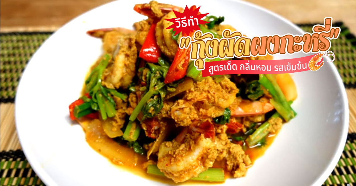 เมนูหมึกผัดผงกะหรี่ก็ทำบ่อยจนเบื่อ ลองเปลี่ยนมาทำเมนูกุ้งผัดผงกะหรี่ อาหารตามสั่งซึ่งเป็น สูตรอาหารไทยโดยใส่น้ำพริกเผา และผักเพิ่มคุณค่า ทีเด็ดคือน้ำปรุงรสเข้มข้น กินกับข้าวสวยอร่อยฟิน จากที่เคยสั่งเมนูผัดผงกะหรี่ โดยเฉพาะเมนูกุ้งผัดผงกะหรี่สุดฮิต ถ้าสั่งกินแล้วได้กุ้งตัวเล็กเว่อร์ และรสชาติไม่เข้มข้นถูกปาก ลองมาทำกินเองรับรองแจ่มกว่าเยอะ กระปุกดอทคอมขอนำเสนอวิธีทำกุ้งผัดผงกะหรี่ สูตรจาก คุณ tukata001 สมาชิกเว็บไซต์พันทิปดอทคอม (ครัวตุ๊กตา) ใส่กุ้งสดผัดกับน้ำปรุง เพิ่มความหวานหอมจากผักต่าง ๆ ใครจะดัดแปลงเป็นเมนูผัดผงกะหรี่ทะเล เมนูผัดผงกะหรี่หมู หรือเมนูผัดผงกะหรี่ไก่ก็ตามชอบเลยค่ะกุ้งผัดผงกะหรี่ หอม ๆ ทำง่าย By ครัวตุ๊กตา โดย คุณ tukata001 สมาชิกเว็บไซต์พันทิปดอทคอม (ครัวตุ๊กตา) สวัสดีค่ะ วันนี้ครัวตุ๊กตา ชวนทุกคนมาทำกุ้งผัดผงกะหรี่ ทำง่าย ๆ แต่อร่อยค่ะ กินกับข้าวสวยร้อน ๆ อร่อยสุด ๆ กุ้ง 500 กรัม น้ำพริกเผา 2-3 ช้อนโต๊ะ นมข้นจืด 1 กระป๋อง น้ำมันหอย 2 ช้อนโต๊ะ ซีอิ๊วขาว 2 ช้อนโต๊ะ น้ำตาลทราย 1 ช้อนโต๊ะ ไข่ 3 ฟอง น้ำมันพืช 2 ช้อนโต๊ะ กระเทียมสับ 2 ช้อนโต๊ะ หอมหัวใหญ่ 1 หัว ผงกะหรี่ 2-3 ช้อนโต๊ะ น้ำปลา 1 ช้อนโต๊ะ ขึ้นฉ่าย 2 ถ้วย พริกชี้ฟ้าแดง 2 ช้อนโต๊ะ ต้นหอม 3 ต้น ► เริ่มทำน้ำปรุงกันก่อน โดยนำอ่างผสมมาใส่น้ำพริกเผา ผงกะหรี่ และนมสด คนให้เข้ากัน ► ปรุงรสด้วยน้ำมันหอย ซีอิ๊วขาว และน้ำตาลทราย คนให้เข้ากัน ► ตีไข่ 3 ฟอง เติมไข่ลงในส่วนผสมน้ำปรุง คนให้เข้ากัน เตรียมรอไว้ ► ตั้งกระทะ ใส่น้ำมันเล็กน้อย เปิดไฟกลาง ใส่กระเทียมลงเจียวพอหอม ใส่หอมหัวใหญ่ลงผัด พร้อมใส่ผงกะหรี่ลงผัดให้หอมใหญ่พอสุก ตอนนี้กลิ่นจะหอมมากมายค่ะ ► ใส่กุ้ง ที่เตรียมไว้ลงผัด พอกุ้งเริ่มมีหางแดง ๆ นิดหน่อย ใส่ส่วนผสมเครื่องปรุงที่เราผสมไว้ในอ่างผสมลงผัดให้เข้ากัน ชิมรสดู เพิ่มเติมได้ตามชอบค่ะ ► ชิมรสตามชอบแล้ว คราวนี้ใส่ผักขึ้นฉ่ายหั่นท่อน พริกชี้ฟ้าแดง และต้นหอมหั่นท่อน ลงผัดให้เข้ากันจนผักสุก ตาใส่ผักเยอะหน่อย เพราะชอบกินมาก ใส่มาก ใครไม่ชอบก็ใส่น้อยกว่านี้นะคะ ► พอผักสุกก็เป็นอันเสร็จแล้วค่ะ ตักเสิร์ฟ กินกับข้าวสวยร้อน ๆ อร่อยมากค่ะ ลองทำดูนะคะ ไม่ยากเลยค่ะ พออ่านสูตรกุ้งผัดผงกะหรี่จบปุ๊บก็รีบออกไปซื้อผงกะหรี่กับวัตถุดิบอื่น ๆ ทันที ส่วนข้าวสวยฝากคนที่บ้านหุงเรียบร้อยแล้วจ้า ถ้าจ่ายตลาดเสร็จก็พร้อมเข้าครัวทำกับข้าวรัว ๆ ทันที เชื่อเถอะว่าไม่ถึง 5 นาทีก็เกลี้ยงจานแน่นอนค่ะขอขอบคุณข้อมูลและภาพจาก : คุณ tukata001 สมาชิกเว็บไซต์พันทิปดอทคอม (ค