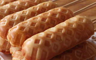 แบบนี้ต้องขอสอง กับวาฟเฟิลไส้กรอก สูตรขนมหอมกลิ่นนมเนย เคี้ยวนุ่มไม่ติดคอ จับเสียบไม้กินง่าย ๆ มาพร้อมสูตรแป้งโฮมเมด หลังจากเคยทำเมนูวาฟเฟิล ทั้งวาฟเฟิลรังผึ้ง วาฟเฟิลฮ่องกง หรือวาฟเฟิลเบลเยี่ยมไปแล้ว คราวนี้ถึงเวลาทำวาฟเฟิลเสียบไม้บ้าง กระปุกดอทคอมขอนำเสนอวิธีทำวาฟเฟิลไส้กรอก หรือ วาฟเฟิลฮอตดอก (Hotdog Waffle) สูตรจาก ครัวป้ามารายห์ แป้งวาฟเฟิลใส่นมกับเนย จับไส้กรอกเสียบไม้แล้ววางลงบนแป้ง ใครจะดัดแปลงเป็นวาฟเฟิลไส้กรอกชีสก็ได้เช่นกันค่ะ ไข่ไก่ (เบอร์ 2) 5 ฟอง น้ำตาลทราย 180 กรัม สารเสริมเอสพี (SP) 1 ช้อนโต๊ะ กลิ่นวานิลลา 1+1/2 ช้อนชา แป้งสาลีอเนกประสงค์ (แป้งว่าว) 250 กรัม แป้งบัวแดง (แป้งเค้ก) 250 กรัม ผงฟู 2 ช้อนชา เกลือป่น 1/2 ช้อนชา นมจืด 600 มิลลิลิตร เนยสด 100 กรัม (ละลายแล้วพักให้อุ่นลง) ไส้กรอก
