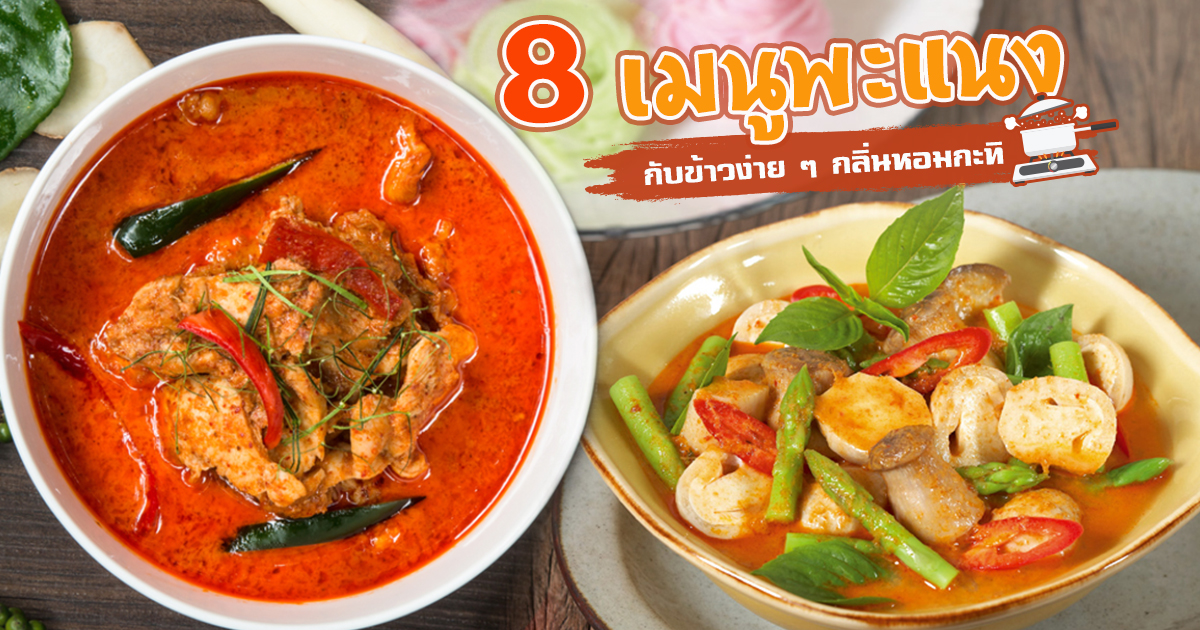 อร่อยบอกต่อกับเมนูพะแนง สูตรอาหารไทยรสเด็ด สีสวยรสชาติเข้มข้น หอมมันกะทิ กินกับข้าวสวยร้อน ๆ อิ่มไปอีกมื้อ เมนูพะแนง อีกสูตรแกงกะทิยอดนิยม รสชาติไม่เผ็ดมากและมีกลิ่นหอมรัญจวน ใครไม่ชอบกินเผ็ดจัดเลยจ้า กระปุกดอทคอมขอนำเสนอวิธีทำพะแนง ได้แก่ พะแนงหมู พะแนงไก่ พะแนงเนื้อ พะแนงกุ้ง พะแนงปลาหมึก พะแนงเห็ด และพะแนงชีส จะใช้เครื่องแกงพะแนงสำเร็จรูปหรือจะโขลก พะแนงเนื้อ เนื้อแล่บาง 500 กรัม กะทิ 1 กระป๋อง น้ำพริกแกงพะแนง (ใช้พริกแกงเผ็ดผสมกับลูกผักชีกับยี่หร่าคั่ว ตำรวมกันได้) 3-4 ช้อนโต๊ะ น้ำปลา 1-2 ช้อนโต๊ะ น้ำตาลปี๊บ 1 ช้อนโต๊ะ ใบมะกรูดซอย 1-2 ช้อนโต๊ะ มะเขือพวง (ใส่หรือไม่ใส่ก็ได้) กุ้งสด กะทิ 1 ถ้วย น้ำพริกแกงพะแนง 3 ช้อนโต๊ะ น้ำปลา 2-3 ช้อนชา น้ำตาลปี๊บ 1 ช้อนโต๊ะ มะเขือพวง ใบมะกรูดหั่นฝอย พริกชี้ฟ้าแดงหั่นฝอย หมายเหตุ : น้ำพริกแกงพะแนงจะใส่ถั่วลิสงคั่วป่นและลูกผักชีคั่วป่นมาก กลิ่นลูกผักชีคั่วจะนำ และสีจะคล้ำ น้ำพริกแกงจะข้น ส่วนรสชาติของพะแนงที่ดีจะกลมกล่อมไม่ควรหวานจัดเค็มจัดหรือเผ็ดจัด พริกแกงพะแนง 240 กรัม หัวกะทิ 1 ถ้วย เนื้อไก่หั่นชิ้น 600 กรัม หางกะทิ 2 ถ้วย น้ำตาลปี๊บ 2 ช้อนโต๊ะ น้ำปลา 1 ช้อนโต๊ะ ใบโหระพา 1 ถ้วย มะกรูดซอย 10 ใบ 1. ตั้งกระทะใส่หัวกะทิ เคี่ยวจนแตกมัน ใส่พริกแกงพะแนงลงไปผัดจนหอม 2. ใส่เนื้อไก่รวนกับกะทิจนสุก เติมหางกะทิ 3. ปรุงรสด้วยน้ำปลากับน้ำตาลปี๊บ พอเดือดใส่ใบมะกรูดกับโหระพา ปิดไฟ น้ำมันพืช สำหรับผัด น้ำพริกแกงพะแนง 2 ช้อนโต๊ะ กะทิ 1 ถ้วย เนื้อหมูหั่นเป็นชิ้นบาง 300 กรัม ใบมะกรูดฉีกก้านกลาง 3 ใบ น้ำปลา 1 ช้อนโต๊ะ น้ำตาลปี๊บ 1 ช้อนโต๊ะ ใบโหระพา 50 กรัม ใบมะกรูดซอย พริกชี้ฟ้าแดงซอย เนื้อปลาหั่นชิ้นตามชอบ 600 กรัม น้ำพริกแกงพะแนง 4 ช้อนโต๊ะ หัวกะทิ 2/4 ถ้วย น้ำมันพืช 4 ช้อนโต๊ะ กะทิ 1 ถ้วย น้ำตาลปี๊บ 3 ช้อนชา น้ำปลา 3 ช้อนชา พริกชี้ฟ้าสีแดงหั่นแฉลบ 2 เม็ด ใบโหระพา 1 ถ้วย 1. ตั้งกระทะใส่น้ำมันพืชพอร้อน ใส่น้ำพริกแกงพะแนงลงผัดจนหอม เติมหัวกะทิลงผัดจนหอมและแตกมัน 2. ใส่กะทิผัดจนเดือด ใส่เนื้อปลา อย่าคนเพราะจะทำให้คาว รอจนเดือดและปลาสุก 3. ปรุงรสด้วยน้ำตาลปี๊บกับน้ำปลา ค่อย ๆ คนจนเข้ากัน โรยพริกชี้ฟ้ากับใบโหระพา คนจนเข้ากัน ตักใส่ถ้วย น้ำพริกแกงพะแนง 50 กรัม นมข้นจืด หรือนมถั่วเหลือง (รสจืด) 1 ถ้วยตวง แป้งสาลีอเนกประสงค์ 1 ช้อนโต๊ะ ผักที่ชอบ 150 กรัม ปลาทูน่า 1 กระป๋อง (รีดน้ำออกก่อน) ข้าวกล้อง 150 กรัม เกลือ ตามชอบ ชีส 50 กรัม น้ำพริกแกงพะแนง 2+1/2 ช้อนโต๊ะ น้ำมันพืช 1 ช้อนโต๊ะ หัวกะทิ 1/4 ถ้วยตวง กะทิเข้มข้นปานกลาง 1+1/2 ถ้วยตวง เห็ดฟาง (ผ่าครึ่งดอก) 100 