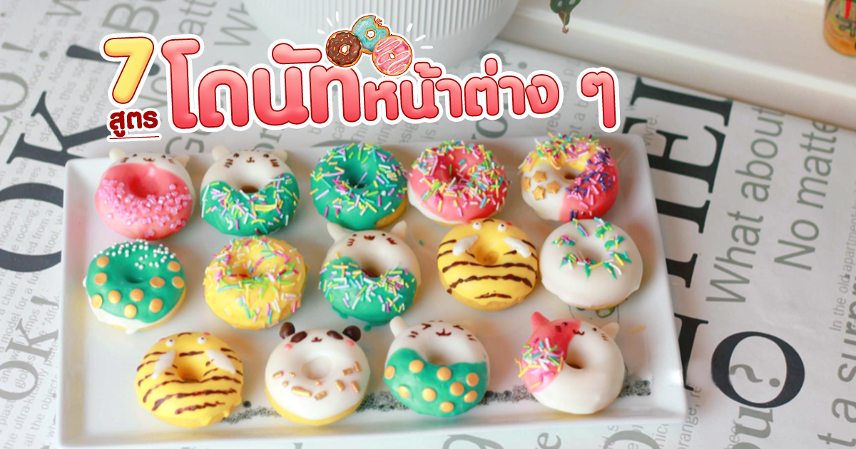 อีกหนึ่งขนมที่ใครก็ชอบกับเมนูโดนัทหน้าต่าง ๆ แป้งเหนียวนุ่มเหมาะกับทุกวัย ทำกินเองหรือทำแจกก็ได้มาพร้อมวิธีทำแป้งโฮมเมด แม้ว่าจะมีขนมโดนัทวางขายทั่วไปแต่หน้าตาก็ซ้ำเดิม บางครั้งเห็นแล้วก็เบื่อ ถ้างั้นลองหาเวลาว่างมาทำกินเองดีไหม รับรองอร่อยและสนุกสนานแน่นอนค่ะ กระปุกดอทคอมขอนำเสนอวิธีทำโดนัทหน้าต่าง ๆ เช่น โดนัทแฟนซี โดนัทน้ำตาล โดนัทเคลือบไอซิ่ง โดนัทหน้ามะพร้าว เป็นต้น ลองเลือกสูตรที่ชอบแล้วลุยกันเลยค่ะ โดนัทขนาดทั่วไปใครก็ทำกัน ลองเปลี่ยนมาทำโดนัทจิ๋วกันบ้างดีไหม สูตรนี้ใช้เครื่องทำโดนัทและแต่งหน้าเป็นรูปสัตว์หรือรูปการ์ตูนตามชอบ ลองทำให้ลูกหรือคนพิเศษกันเถอะ แป้งโดนัทสูตรตามชอบ (สูตรแป้งโดนัทดูได้ที่นี่) ช็อกโกแลตหลากสี อัลมอนด์สไลซ์ สำหรับแต่ง เกล็ดน้ำตาล สำหรับแต่ง ใครเบื่อโดนัทหน้าน้ำตาลลองมาทำโดนัทเคลือบน้ำตาลไอซิ่งกันบ้างดีไหม มาพร้อมวิธีทำแป้งโดนัทนมสดและวิธีทำน้ำตาลไอซิ่งสำหรับชุบโดนัท น้ำตาลทราย 120 กรัม ยีสต์ 15 กรัม น้ำ 100 มิลลิลิตร นมสดรสหวาน 140 มิลลิลิตร (ในสูตรใช้นมไทย-เดนมาร์ครสหวานแทน กะจะให้หวาน) เกลือป่น 5 กรัม (เราใส่แค่หยิบ 3 นิ้ว) ไข่ไก่ (ขนาด 50-55 กรัม) 2 ฟอง แป้งสาลีอเนกประสงค์ 500 กรัม เนยจืด 30 กรัม ไขมันถั่วเหลืองสำหรับทอดโดนัท นมสดรสหวาน 4 ช้อนโต๊ะ (เราใช้นมไทย-เดนมาร์ครสหวานแทน) เนยสด 2 ช้อนโต๊ะ กลิ่นวานิลลา 1/2 ช้อนชา น้ำตาลไอซิ่ง 330 กรัม ผงโกโก้ 1 ช้อนโต๊ะ 1. นำนมสดและเนยใส่หม้อ นำขึ้นตั้งไฟอ่อน คนให้เนยละลาย 2. พอนมเดือดนิดหน่อย ใส่กลิ่นวานิลลาลงไป ปิดไฟ 3. ใส่น้ำตาลไอซิ่งที่ร่อนแล้วลงลงไป คนผสมจนเนื้อเนียน จากนั้นใส่ผงโกโก้ ตั้งไฟต่อให้ร้อนแล้วคนอีก เพราะมันเย็นเร็วมาก (ต้องรีบชุบรีบทำ พอมันเริ่มแห้งเราก็ตั้งไฟต่อได้ให้พอร้อนแล้วค่อยชุบต่อ) จากที่เคยทำโดนัทหน้าน้ำตาลไอซิ่งเกลซหน้าโล้น ๆ ลองเพิ่มความฟรุ้งฟริ้งด้วยเกล็ดน้ำตาลหน่อยดีไหม มาพร้อมวิธีทำแป้งโดนัทเหนียวนุ่ม เติมกลิ่นวานิลลา ทอดร้อน ๆ แล้วแต่งตามชอบและหม่ำกันเลยจ้า แป้งสาลีอเนกประสงค์ 500 กรัม น้ำตาลทราย 100 กรัม ยีสต์ 2 ช้อนชา ผงฟู 2 ช้อนชา เกลือ 1/2 ช้อนชา นม 400 กรัม ไข่แดง 2 ฟอง กลิ่นวานิลลา 1 ช้อนชา น้ำมันสำหรับใช้ทอด นมจืด 4 ช้อนโต๊ะ เนยสด 2 ช้อนโต๊ะ ไอซิ่ง 330 กรัม กลิ่นวานิลลา 1/2 ช้อนชา สีผสมอาหารตามชอบ ท็อปปิ้งตามชอบ เช่น เกล็ดน้ำตาล ซอสช็อกโกแลต ใครอยากทำโดนัทสุดแนว ขอนำเสนอโดนัทหน้ามะพร้าวครีมมะนาวเลยจ้า จุดเด่นคือจับโดนัทชุบครีมมะนาวรสหวานอมเปรี้ยวเพิ่มความกรุบกรอบจากมะพร้าวอบแห้ง แป้งสาลีอเนกประสงค์ 400 กร