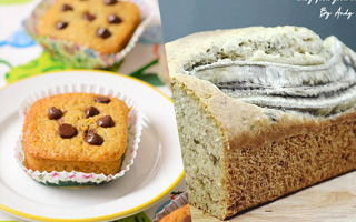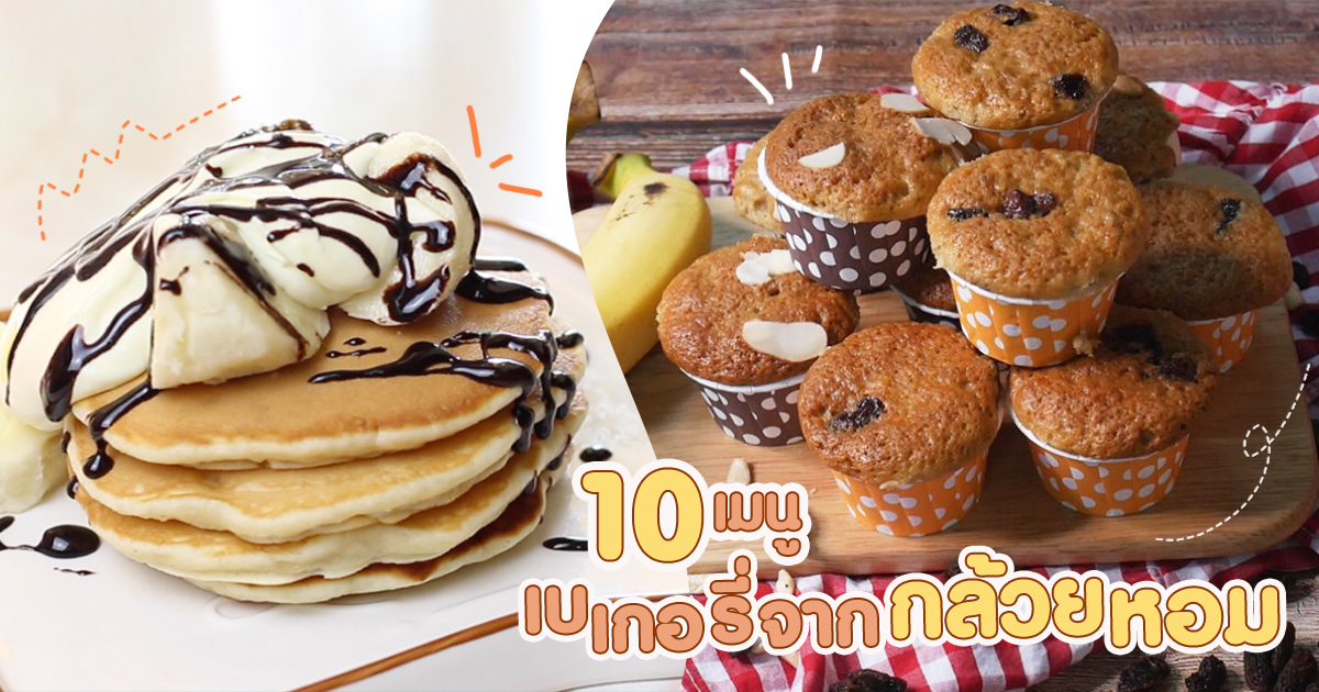 กล้วยหอมทำอะไรได้บ้าง ? จับมาทำเมนูเบเกอรี่กล้วยหอมไม่น่าเบื่อกัน เหมาะทั้งทำกินเป็นอาหารเช้าและจิบกับชายามบ่าย ถ้าอยากเห็นหน้าตาต้องตามมาดูกัน อย่างที่รู้กันดีว่าส่วนใหญ่เราจะจับกล้วยหอมแปลงร่างเป็นเค้ก เบเกอรี่ โดยเฉพาะเค้กกล้วยหอม สำหรับใครแอบเอียนลองมาทำหน้าตาแบบอื่น ๆ บ้างดีไหม กระปุกดอทคอมขอนำเสนอวิธีทำเบเกอรี่กล้วยหอม เช่น เค้กกล้วยหอม แพนเค้กกล้วยหอม มัฟฟินกล้วยหอม ทาร์ตกล้วยหอม ชิฟฟ่อนกล้วยหอม เป็นต้น ถ้าว่างตอนไหนลองทำดูนะคะ กล้วยหอม 2 ลูก (ประมาณ 279 กรัม) เนยจืด 70 กรัม ไข่ไก่ (เบอร์ 0) 2 ฟอง กลิ่นเนยวานิลลา 1/2 ช้อนชา น้ำตาลทราย 80 กรัม แป้งเค้ก (พัดโบก) 160 กรัม ผงฟู 1 ช้อนชา เบกกิ้งโซดา 1/4 ช้อนชา กล้วยหอม 1 ลูก สำหรับโรยหน้า กล้วยหอม 250 กรัม น้ำมะนาว 1 ช้อนชา ครีมชีส 130 กรัม โยเกิร์ต 100 กรัม ไข่ไก่ 4 ฟอง น้ำตาลหล่อฮังก๊วย 50 กรัม อัลมอนด์ป่น 150 กรัม น้ำมันมะพร้าว 40 กรัม นมสด 2 ลิตร แอปเปิลไซเดอร์ 6 ช้อนโต๊ะ (ใช้น้ำมะนาวแทนได้) เกลือชมพู 1/4 ช้อนชา ทำครีมชีสโดยเทนมลงในหม้อ พอเริ่มร้อนใส่แอปเปิลไซเดอร์ทีละช้อน ทยอยใส่ลงไปเรื่อย ๆ และคนเรื่อย ๆ ห้ามหยุดมือจนไขมันเริ่มแยกออกมา พอใส่ครบ 6 ช้อนโต๊ะ น้ำเวย์เริ่มใสให้ยกลงจากเตา กรองด้วยกระชอนและผ้าขาวบาง พักให้น้ำเวย์ออกมากที่สุด นำก้อนเวย์ไปปั่นเพื่อความเนียน ใส่เกลือชมพู ผสมจนเข้ากัน จะได้ประมาณ 300 กรัม ผงอัลมอนด์ 5 กรัม แป้งอเนกประสงค์ 15 กรัม น้ำตาลทราย 15 กรัม เนยจืดแช่เย็น 15 กรัม ไข่ไก่ (เบอร์ 2) 1 ฟอง น้ำตาลทราย 60 กรัม เนยจืด 30 กรัม น้ำมันพืช 30 กรัม กล้วยหอมบด 60 กรัม แป้งเค้ก 120 กรัม ผงฟู 1 ช้อนชา โยเกิร์ต 60 กรัม กลิ่นวานิลลา 1/2 ช้อนชา น้ำตาลทราย 45 กรัม ผงโกโก้ 10 กรัม น้ำ 25 กรัม กล้วยหอมบด 105 กรัม ไข่ไก่ (เบอร์ 2) 1 ฟอง กลิ่นวานิลลา 1/2 ช้อนชา น้ำมันพืช 24 กรัม นมจืด 110 กรัม แป้งอเนกประสงค์ 120 กรัม น้ำตาลทราย 20 กรัม ผงฟู 1+1/4 ช้อนชา เกลือ 1/4 ช้อนชา กล้วยหอม สำหรับตกแต่ง วิปปิ้งครีม 70 กรัม น้ำตาลทราย 7 กรัม กล้วยหอม 2 ลูก หรือ 250 กรัม ไข่ไก่ (เบอร์ 2) 3 ฟอง น้ำตาลทราย 170 กรัม แป้งเค้ก 200 กรัม เบกกิ้งโซดา 1 ช้อนชา ผงฟู 1+1/2 ช้อนชา เกลือ 1/2 ช้อนชา น้ำมันพืช 1 ถ้วย ลูกเกด อัลมอนด์สไลซ์ หรือเม็ดมะม่วงหิมพานต์ กล้วยหอม ปอกเปลือกหั่นเป็นชิ้นเล็ก 1 ลูก ไข่ไก่ 1 ฟอง นมจืด 30 มิลลิลิตร หรือ 2 ช้อนโต๊ะ (ปรับเพิ่มได้ตามโครงสร้างยี่ห้อแป้งที่ใช้) น้ำมันรำข้าว 25 มิลลิลิตร เกลือป่น 1/4 ช้อนชา น้ำตาลทราย 80 กรัม (ปรับลด-เพิ่มตามชอบ) กลิ่นวานิลลา หรือกลิ่นกล้วย 1/4 ช้อนชา แป้งเค้กตราพัดโบก 120 กรัม (ใช้แป้งยี่ห้ออื่นได้) ผงฟู 1+1/2 ช้อนชา แป้งสาลีอเนกประสงค์ 200 กรัม ผงฟู 1/2 ช้อน