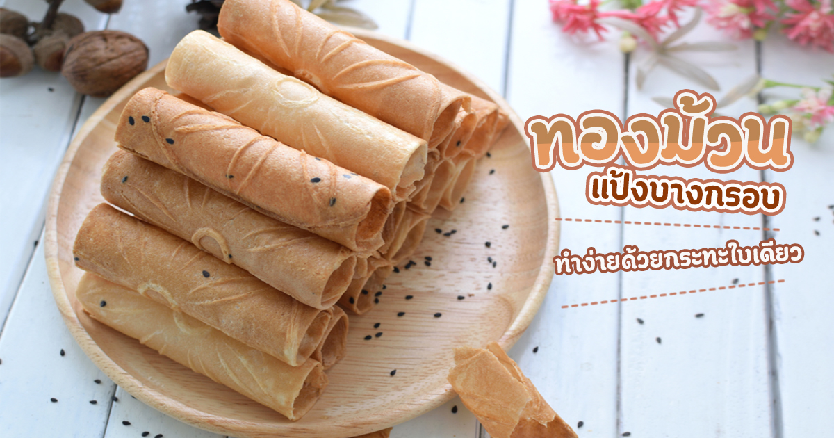ทองม้วนกะทิสดคงต้องชิดซ้ายให้กับทองม้วนเนยสดสูตรนี้ ทั้งกรอบและกลิ่นหอมมาก แถมยังทำเองที่บ้านง่าย ๆ ด้วยด้วยกระทะเทฟลอน เอ่ยถึงทองม้วนกรอบ ขนมไทย ส่วนใหญ่จะนึกถึงทองม้วนกรอบกะทิสด แต่สำหรับใครที่อยากทำกินเองและเอียนกับทองม้วนรสชาติซ้ำเดิม อยากให้ลองทำทองม้วนกรอบเนยสดกันเลยค่ะ กระปุกดอทคอมขอนำเสนอวิธีทำทองม้วน สูตรใส่เนยสด เพิ่มความหอมจากงาดำ หยอดลงในกระทะเทฟลอน ลองกินตบท้ายอาหารจานเดียวเติมความฟินกันเลยจ้า ไข่ไก่ 4 ฟอง แป้งสาลี 110 กรัม เนยสด 100 กรัม น้ำตาลทราย 90 กรัม งาดำ 1. ตีไข่ไก่กับน้ำตาลทรายจนน้ำตาลละลาย 2. เอาเนยใส่ไมโครเวฟ ประมาณ 1 นาทีหรือจนละลาย เทลงในส่วนผสมไข่ไก่ เติมแป้งลงไป ตีให้เข้ากันจนเป็นเนื้อครีม ใส่งาดำลงไป 3. ตั้งกระทะเทฟลอนใช้ไฟอ่อน หยอดส่วนผสมแป้งลงไป 1 ช้อนโต๊ะ กลอกไปมาจนแป้งบางเป็นทรงกลม ทอดทั้งสองด้านเป็นสีเหลืองทอง เสร็จแล้วม้วนแป้งเป็นทรงกลม จากนั้นพักไว้จนเย็น ใครกำลังมองหาขนมทำกินเอง นอกจากพวกแพนเค้กและเค้กนึ่งแล้ว มาลองทำทองม้วนกันดูนะคะ อุปกรณ์หาง่ายจากในครัวและส่วนผสมมีไม่กี่อย่างด้วยค่ะ ☆ วิธีทำทองม้วนทรงกรวย สูตรแป้งบางกรอบหอมอร่อย ☆ สูตรทองม้วน หอมเนยสดทำง่ายด้วยกระทะใบเดียว ☆ ทองม้วนสด กระทะเทฟลอน สูตรขนมไทยทำง่าย ๆ กินได้จริง