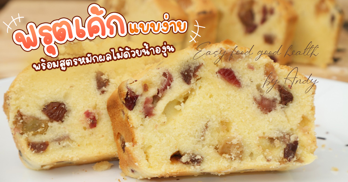 สาวกเค้กกดไลก์รัว ๆ ได้เลยกับฟรุตเค้ก เค้กผลไม้ สูตรหมักผลไม้อบแห้งด้วยน้ำองุ่น ใส่ถั่วเพิ่มเติมได้ เอาไปแช่เย็นเนื้อยิ่งแน่นอร่อย อย่างที่รู้กันดีว่าฟรุตเค้ก ส่วนใหญ่หมักด้วยเหล้ารัม แต่สำหรับคนกินแอลกอฮอล์ไม่ได้คงอด แต่สำหรับเค้กสูตรนี้ไม่ต้องหมักด้วยเหล้าจ้า กระปุกดอทคอมขอนำเสนอวิธีทำฟรุตเค้ก หรือเค้กผลไม้ จับผลไม้อบแห้งหมักกับน้ำองุ่น ถ้าจะให้ดีหมักข้ามคืนเลยก็ได้เพื่อให้ผลไม้มีความนุ่ม สามารถใส่ผลไม้อบแห้งชนิดอื่น ๆ เพื่อสีสันที่สวยงาม พออบเสร็จทาหน้าด้วยน้ำองุ่นเพื่อความฉ่ำ ถ้าชอบความเงางามและรสชาติเข้มข้นขึ้นลองทาแยมส้มเพิ่มได้นะคะ สวัสดีค่ะ วันนี้มาชวนทำเค้กผลไม้แบบไม่ใส่เหล้า หมักด้วยน้ำองุ่นแทน ทำง่าย กินอร่อย ลองทำดูนะคะ เติมน้ำตาลลด-เพิ่มได้เลยค่ะ แอนทำไม่หวานมาก ลูกเกดสีเหลือง ลูกเกดสีดำ แครนเบอร์รีอบแห้ง น้ำองุ่น 100 กรัม แป้งเค้ก 1 ช้อนโต๊ะ เนยเค็ม อุณหภูมิห้อง 100 กรัม น้ำตาลทรายป่นละเอียด 80 กรัม ไข่ไก่ (เบอร์ 2) 2 ฟอง กลิ่นวานิลลา 1/4 ช้อนชา แป้งเค้ก ตรามงกุฏม่วง 150 กรัม ผงฟู 1/2 ช้อนชา นมจืด 40 มิลลิลิตร ◆ หมักลูกเกดสีทอง ลูกเกดดำ และแครนเบอร์รี ในน้ำองุ่นนาน 30 นาที จากนั้นกรองออก นำแป้งเค้กคลุกให้ทั่ว พักไว้ ◆ นำเนยอุณหภูมิห้องใส่ในชามผสม ตามด้วยน้ำตาลทรายป่น ใช้เครื่องตีมือถือ (Hand Mixer) ตีสปีดกลางจนเนียน ◆ ใส่ไข่ไก่ ตามด้วยกลิ่นวานิลลา ตีให้เข้ากัน ◆ ร่อนแป้งและผงฟูลงผสม ตะล่อมแป้งจนเข้ากัน จากนั้นแบ่งนมใส่ผสมทีละน้อย ใช้เครื่องตีมือถือ (Hand Mixer) ตีสปีดต่ำจนเนียน ◆ นำผลไม้ที่หมักไว้ลงผสม คนให้เข้ากัน เทใส่พิมพ์ นำเข้าเตาอบที่อุณหภูมิ 180 องศาเซลเซียส ใช้ไฟบน-ล่าง อบนาน 40 นาที อย่าลืมวอร์มเตาอบก่อนนะคะ ◆ หลังอบเสร็จ นำน้ำองุ่นหลังหมักผลไม้มาทาผิวเค้ก รอให้คลายร้อน ตัดเป็นชิ้นพร้อมเสิร์ฟจ้า ถ้าชอบลองทำดูนะคะ ใครมีผลไม้อบแห้งเหลือ ๆ กินเดี่ยวก็หวานไปหน่อย จับมาทำเค้กผลไม้เบเกอรี่สักก้อนกันเถอะ แต่งหน้าด้วยผลไม้แห้งและถั่วอัลมอนด์ก็ฟินไปอีกจ้า ขอบคุณข้อมูลจาก Easy food good health by Andy