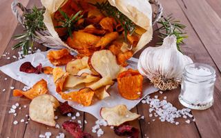 ตกบ่ายทีไรปากว่างต้องหาอะไรมาเคี้ยวใช่ไหม ? หากติดนิสัยเป็นคนกินจุบจิบ นี่เลยเมนูผักอบกรอบ จับผักมาแปรรูปเป็นขนม รับรองทั้งอร่อยและไม่อ้วนด้วย จากที่เคยกินขนม ไม่ว่าจะเป็นเค้กหรือคุกกี้แก้หิว แม้จะอร่อยแต่สำหรับคนกลัวอ้วนคงไม่เหมาะ กระปุกดอทคอมขอนำเสนอวิธีทำผักอบกรอบ เช่น ซูกินีอบกรอบ มันหวานอบกรอบ แครอตอบกรอบ เป็นต้น ใครอยากลองทำกินเอง ลองมาดูว่าอุปกรณ์ที่จะใช้ทำผักอบกรอบมีอะไรบ้าง ถ้าใครมีพร้อมก็ลุยกันได้เลยจ้า ใครที่อยากทำผักอบกรอบกินเพลิน ๆ ลองมาดูอุปกรณ์สำคัญ เตาอบเป็นอุปกรณ์หลัก ๆ ที่ต้องมีในการทำผักอบกรอบเลยก็ว่าได้ โดยเฉพาะถ้าทำกินเองที่บ้านใช้ขนาดกะทัดรัด ราคาหลักพัน นอกจากนี้ยังทำของคาว เค้ก และเบเกอรี่ได้ด้วย แต่ถ้าใครอยากซื้อเครื่องอบมาใช้เฉพาะเพื่ออบผักโดยตรงก็ตามสะดวก นอกจากอบผักได้แล้วยังอบผลไม้ หรืออบเครื่องเทศและเนื้อสัตว์ต่าง ๆ ได้ด้วย สามารถบรรจุผักที่ต้องการอบได้ตามขนาดของเครื่อง มีปุ่มเปิด-ปิดและมีสัญญาณไฟขณะที่เครื่องทำงานอยู่ ปรับระดับความร้อนได้ สำหรับการทำผักอบกรอบอุปกรณ์ที่ต้องมีก็คือมีดปอกหรือมีดหั่นผัก ซึ่งจะใช้ในการปอกเปลือกผักหรือหั่นสไลซ์ผักให้เป็นชิ้นหรือแผ่นบางก็ได้เช่นกัน ถ้าใครไม่ถนัดใช้มีดหั่นหรือกลัวหั่นแล้วชิ้นไม่บางตามต้องการ ลองหาที่สไลซ์หรือเครื่องสไลซ์มาใช้ดูนะคะ เริ่มกันที่ซูกินีอบกรอบ สูตรนี้ใส่ผงกระเทียมเพิ่มความหอม ใส่ความเค็มของเกลือลงไปด้วย อบจนกรอบ เก็บไว้กินได้นาน ซูกินี 4 ลูกเล็ก ยีสต์ 1 ช้อนชา เกลือ 1/2 ช้อนชา ผงกระเทียม 1/2 ช้อนชา 1. สไลซ์ซูกินีเป็นแผ่นบาง เตรียมไว้ 2. ผสมยีสต์ เกลือ และผงกระเทียม จนเข้ากัน ใส่ซูกินีอบแห้งลงไป คนผสมจนเข้ากัน 3. นำเข้าเครื่องอบผลไม้แห้งที่อุณหภูมิ 135 องศาฟาเรนไฮต์ หรือประมาณ 60 องศาเซลเซียส ประมาณ 6 ชั่วโมง หรือขึ้นอยู่กับขนาดของซูกินีด้วย มันหวานต้มกินบ่อยจนเอียน ลองจับมาอบกรอบกันดีไหม สูตรนี้ใส่เครื่องปรุงกลิ่นหอม เพิ่มความเค็มจากเกลือด้วย มันหวาน 450 กรัม น้ำมันอะโวคาโด 4 ช้อนโต๊ะ หอมใหญ่อบแห้ง 2 ช้อนโต๊ะ กระเทียมอบแห้ง 2 ช้อนโต๊ะ ต้นหอมอบแห้ง 2 ช้อนโต๊ะ เกลือ 1 ช้อนชา 1. เปิดเตาอบที่อุณหภูมิ 400 องศาฟาเรนไฮต์ หรือประมาณ 200 องศาเซลเซียส และวางกระดาษรองอบที่ถาดอบ เตรียมไว้ 2. ล้างทำความสะอาดมันหวานและสไลซ์เป็นแผ่นบาง หรือเป็นแท่ง วางลงบนถาดรองอบที่เตรียมไว้ โรยน้ำมันอะโวคาโด ประมาณ 2 ช้อนโต๊ะ โรยส่วนผสมที่เหลือลงไปส่วนหนึ่ง นำไปอบประมาณ 10 นาที นำออกมา พลิกกลับด้านและโรยส่วนผสมที่เหลือ