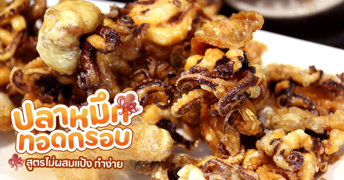 ปลาหมึกทอดกรอบมาแล้ว ! ไม่ต้องชุบแป้งก็กรอบอร่อย ได้รสชาติหมึกเน้น ๆ อยากรู้ว่าทำยังไงต้องตามมาส่องกัน จากที่เคยทำปลาหมึกทอดแบบชุบแป้งเพื่อความกรอบ แม้จะอร่อยแต่ไม่ได้รสชาติจากหมึกแท้จริง คงจะดีถ้ามีวิธีทำแบบไม่ชุบแป้งเนอะ กระปุกดอทคอมขอนำเสนอวิธีทำปลาหมึกทอดกรอบ สูตรอาหารไม่ชุบแป้ง แค่เอาไปลวกให้สุกและอบไล่ความชื้น จากนั้นค่อยเอาไปทอดจนสุก กินเป็นอาหารว่างหรือกินกับข้าวสวย และมีน้ำจิ้มซีฟู้ดเพิ่มเติมยิ่งอร่อยจ้า หากนึกถึงเมนู "ปลาหมึกทอดกรอบ" หลายคนอาจจะคิดว่าต้องเป็นปลาหมึกที่เอาไปชุบแป้งแล้วทอด ซึ่งจริง ๆ แล้วจะเรียกว่าปลาหมึกทอดกรอบก็ไม่ค่อยจะถูกนัก เพราะที่กรอบจริง ๆ ไม่ใช่เนื้อปลาหมึกแต่เป็น "แป้ง" ที่เคลือบผิวด้านนอกต่างหากที่กรอบ แต่วันนี้เราจะพาทุกคนไปทำ "ปลาหมึกทอดกรอบของแท้" ที่กรอบจริง ๆ ไม่จกตาจากเนื้อปลาหมึกแท้ไม่ผสมแป้งทอด บางคนอาจจะ เอ๊ะ ? ปลาหมึกเนื้อตึง ๆ นี่น่ะเหรอจะทำให้กรอบแบบหมูกรอบได้.. บอกเลยว่าสูตรนี้เราภูมิใจนำเสนอมาก เพราะเป็นสูตรที่ทดลองทำและแกะมาจากวิธีทำ "แคบปลาหมึก" (หาสูตรทำยากมาก) ก่อนที่เราจะเอามาปรับสูตรให้ง่ายเหมาะกับที่ทุกคนสามารถเอาไปทำต่อเองได้ทุกครัวเรือน แต่ต้องมีอุปกรณ์ 2 อย่าง ที่ต้องมีก่อนนะ ได้แก่ เตาสำหรับทอด (เตาแก๊สหรือเตาไฟฟ้าก็ได้) และหม้อทอดไร้น้ำมันหรือหม้ออบลมร้อน สูตรนี้รับประกันความหอม อร่อย ถูกใจใครหลายคนแน่ ๆ จ้า ปลาหมึกสาย 1 กิโลกรัม ★ นำปลาหมึกสายล้างน้ำให้สะอาด เอาตาและเครื่องในออก แล้วนำไปลวกในน้ำร้อนให้สุก ประมาณ 3-5 นาที ★ เมื่อลวกสุกแล้วให้นำปลาหมึกสายมาแช่ในน้ำเย็นทันทีเพื่อรักษาสภาพเนื้อเอาไว้ ★ จากนั้นนำปลาหมึกสายพักผึ่งลมให้แห้งประมาณ 15-20 นาที (แนะนำให้ใช้พัดลมเป่าเพื่อจะได้แห้งเร็วขึ้น) ★ นำปลาหมึกสายเข้าหม้ออบลมร้อนหรือหม้อทอดไร้น้ำมันที่อุณหภูมิ 150 องศาเซลเซียส เป็นระยะเวลา 15-25 นาที เพื่อไล่ความชื้นออกจากตัวปลาหมึก ★ เมื่ออบไล่ความชื้นแล้วจะได้เนื้อปลาหมึกที่แห้งผิวตึง สังเกตว่าจะไม่มีรอยเปียกน้ำอยู่บนพื้นผิวหม้อทอด และจับปลาหมึกแล้วต้องไม่มีน้ำติดบนมือ ★ ตั้งน้ำมันในกระทะให้ร้อนจัด จากนั้นเบาไฟลง แล้วนำปลาหมึกสายที่อบไล่ความชื้นแล้วทอดลงไป ★ ทอดจนได้เนื้อปลาหมึกสายเป็นสีเหลืองสวยเป็นอันใช้ได้ ★ ตักขึ้นมาพักเพื่อให้โดนอากาศประมาณ 5-10 นาที จะได้เนื้อปลาหมึกสายทอดกรอบที่กรอบมาก ๆ ดูฟองอากาศที่พองบนเนื้อปลาหมึกสิ โอ้โห ! ถ้ายังไม่กรอบเอาปลาหมึกมาฟาดหน้าเลยค่ะ ! ตอนกัดเข้าปากนี่เสียงกรอบ