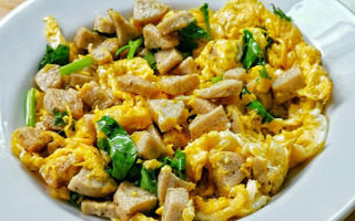 เมนูไข่เจียวหมูยอ สูตรอาหารเมนูไข่แสนนุ่มหอมกลิ่นขึ้นฉ่าย พร้อมเทคนิคทอดไข่เจียวให้อร่อย ไข่เจียว เมนูไข่ อาหารเช้า นอกจากทำไข่เจียวหมูสับ ไข่เจียวกุ้งสับ หรือไข่เจียวชะอม กันแล้ว ลองมาทำไข่เจียวหมูยอตามสูตรนี้กันเลย เริ่มจากใส่หมูยอลงไปทอดจนพองกรอบแล้วตอกไข่ลงไป จากนั้นก็ทอดจนไข่สุกนุ่ม กลิ่นหอม สุดท้ายใส่ขึ้นฉ่ายลงไปคลุกเคล้าจนทั่ว แค่นี้ก็พร้อมเสิร์ฟแล้วค่ะ สูตรทำไข่เจียวให้อร่อย ไข่ที่เลือกใช้ ทั้งไข่ไก่หรือไข่เป็ดต้องสดใหม่ ไม่เป็นไข่ที่เก็บไว้นานจนเกินไป เพราะอาจมีกลิ่นและความหนืดลดลง ควรกะปริมาณไข่กับเครื่องให้พอดี ไม่ควรใส่เครื่องเยอะจนเกินไป เพราะจะทำให้ไข่แตกไม่เป็นแผ่นและอมน้ำมัน เวลาใส่ไข่ลงกระทะแล้วตรงกลางจะสุกช้ากว่ารอบนอก ดังนั้นควรคนตรงกลางนิดหนึ่งเพื่อให้ไข่สุกหรือคนเพื่อให้ไข่ไหลลงชั้นล่าง พอสุกแล้วค่อยพลิกกลับด้าน ไข่จะได้สวยงามเป็นแผ่น เวลาทอดไข่ควรใช้อุณหภูมิไฟให้พอเหมาะ ถ้าทอดไปเรื่อย ๆ แล้วขอบนอกเริ่มเกรียมแต่ตรงกลางยังไม่สุกให้เบาไฟลงได้ ไข่เจียวใส่อะไรบ้าง ถ้าชอบกินไข่เจียวรสจืด ๆ ไม่ต้องปรุงรสเลยก็ได้ จะได้รสสัมผัสของไข่เน้น ๆ แต่ถ้าชอบไข่เจียวแบบมีรสชาติสามารถปรุงรสได้เลย ใส่ได้ทั้งซอสปรุงรส ซอสหอยนางรม ซีอิ๊วขาว น้ำปลา นอกจากนี้ยังใส่พริกสด ต้นหอมซอย และเครื่องเคราอื่น ๆ ได้ตามชอบ เช่น เนื้อสัตว์ เห็ด สมุนไพร ชะอม เป็นต้น เสิร์ฟกับน้ำจิ้มแจ่ว น้ำจิ้มซีฟู้ด ซอสพริก ซอสมะเขือเทศ หรือเหยาะแค่ซอสปรุงรสก็อร่อย วิธีทอดไข่เจียว ถ้าชอบไข่เจียวกรอบฟู ควรใช้น้ำมันในการทอดเยอะพอสมควร เมื่อเทไข่ลงไปแล้วไข่จะลอยไม่ติดกระทะเป็นอันใช้ได้ และควรใช้ไฟแรงด้วย เวลาเทไข่ลงไปทอดควรเทให้เป็นสาย และค่อย ๆ ทยอยเทลงไปเพื่อให้มีความฟูหนาเสมอกันทั้งชิ้น ถ้าต้องการไข่เจียวที่ฟูหนามาก ๆ ให้ทอดในหม้อ จะได้ทรงกลมสวยแล้วยังขึ้นฟูน่ากินด้วย ถ้าชอบไข่เจียวนิ่ม ๆ สามารถใช้น้ำมันน้อยและใช้ไฟกลางได้ ทอดไปเรื่อย ๆ จนสุกทั้งสองด้าน แชร์เมนูไข่เจียวหมูยอสูตรเด็ด ทอดแบบนี้อร่อยมาก มาดูกันครับ โดย คุณหมีซี้ด สวัสดีครับ วันนี้ขอมาแชร์วิธีการทำไข่เจียวหมูยอด้วยวิธีของเชฟร้านเหล้าริมทาง เป็นเมนูกับแกล้มที่ผมได้ไปลองกินมาแล้วชอบ เลยสอบถามวิธีการทำและลองมาทำแชร์ให้ทุกคนได้ลอง มาดูกันเลย ไข่ไก่ 2 ฟอง หมูยอ หั่นชิ้น ขึ้นฉ่าย น้ำมัน สำหรับทอด ตีไข่ไก่ รอไว้ ตั้งกระทะใส่น้ำมันลงไปกะพอท่วมไข่ พอร้อนใส่หมูยอลงทอด พอเริ่มสุกใส่ไข่ตามลงไป ไข่จะลงไปอยู่ด้านล่า