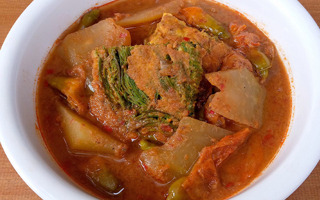 แกงส้มมะละกอใส่ดอกแค น้ำแกงเข้มข้นรสเปรี้ยวแซ่บ หอมนัวจากปลาร้า ใส่ไข่เจียวชะอมแน่น ๆ กินกับปลานิลทอดหรือปลาแดดเดียวทอดสุดฟิน แกงส้ม อีกเมนูอาหารเอาใจคนไม่ชอบแกงกะทิ โดยแต่ละบ้านจะทำแกงส้มตามสูตรของตัวเอง โดยแกงส้มสูตรนี้เป็นแกงส้มมะละกอใส่ดอกแค ใส่ไข่เจียวชะอม ความพิเศษคือ น้ำพริกแกงส้มใส่เนื้อปลาทูต้มลงไปโขลกเพื่อให้น้ำแกงมีความข้น บางสูตรใส่ปลาทูน่า เนื้อปลานิล หรือกุ้งต้ม และใส่น้ำปลาร้าให้น้ำแกงมีความหอมนัวมากขึ้น บางสูตรใส่กะปิก็ได้เช่นกัน แกงส้ม คือ แกงไทยไม่ใส่กะทิ มีรสชาติเปรี้ยวนำเผ็ดตาม โดยแบ่งเป็นแกงส้มภาคกลางและแกงส้มภาคใต้ หรือที่เรียกว่าแกงเหลือง แกงส้มภาคกลางนั้นน้ำพริกแกงส้มจะมีสีออกแดงส้ม เผ็ดน้อยกว่าน้ำพริกแกงส้มภาคใต้ ซึ่งมีสีเหลืองจากขมิ้น ปกติแกงส้มจะกินกับไข่เจียวชะอม ไข่เจียว หรือปลาทอด เช่น ปลาสลิดทอด ปลาทูทอด เป็นต้น หรือปลาแดดเดียวทอด เช่น ปลาช่อนแดดเดียวทอด ปลาดุกนาตัวเล็กแดดเดียวทอด ปลานิลแดดเดียวทอด เป็นต้น รวมทั้งหมูแดดเดียว หมูสามชั้นทอด หรือกุนเชียง พริกแห้ง 5 เม็ด เกลือป่น 1/2 ช้อนชา ข่าหั่นละเอียด 1 ช้อนชา หอมแดง 5 หัว กระเทียม 4 กลีบ กะปิ 1 ช้อนชา กุ้งต้ม 2 ตัว โขลกพริกแห้งกับเกลือป่นให้ละเอียด ใส่ข่า หอมแดง และกระเทียม โขลกต่อให้ละเอียด ใส่กุ้งต้มสุกลงไปโขลก ตามด้วยกะปิ โขลกให้เข้ากัน เตรียมไว้ พริกขี้หนูแดง พริกเม็ดใหญ่แห้ง ขมิ้นชัน หั่นท่อน กะปิ หอมแดง กระเทียมกลีบเล็ก โขลกส่วนผสมน้ำพริกแกงทั้งหมดจนละเอียด เตรียมไว้ แกงส้มมะละกอใส่ดอกแค สไตล์คนชอบน้ำแกงเข้มข้น โดย คุณสมาชิกหมายเลข 6108499 สมาชิกเว็บไซต์พันทิปดอทคอม แกงส้มมะละกอสูตรนี้จะใส่น้ำปลาร้าลงไปด้วยเป็นสูตรทางบ้านปู่ จริง ๆ เป็นอาหารมื้อเย็นเมื่อวาน แต่ทำหม้อใหญ่ พอแกงเหลือค้างคืน เช้านี้เลยอุ่นแล้วกินต่อได้อีก ยิ่งอุ่นยิ่งอร่อย สำหรับแกงส้มครั้งนี้ก็ตำพริกแกงเองเหมือนเดิม น้ำพริกแกงส้ม เป็นพริกแกงที่ไม่ได้ยุ่งยากอะไร วัตถุดิบเกือบทั้งหมดที่จะใช้ทำก็มีติดครัวติดตู้เย็นอยู่แล้ว ที่ซื้อเพิ่มเติมมาก็แค่มะละกอ ดอกแค และชะอม ส่วนกุ้งไม่ได้ใส่เพราะไม่ค่อยชอบกินกุ้ง อีกอย่างสมัยเด็ก ๆ อยู่กันเป็นครอบครัวใหญ่เป็นสิบคน ที่บ้านเวลาแกงส้มมื้อปกติ ๆ กินธรรมดาก็ไม่ได้ใส่กุ้ง แต่จะใส่เป็นปลานิลทอดแทน หรือกินคู่กับปลาแดดเดียวทอด ที่ไม่ใส่กุ้งเพราะสมัยนั้นตลาดแถวบ้านไม่ค่อยมี อีกอย่างด้วยความเป็นครอบครัวใหญ่มันเปลือง จะได้กินกุ้งกินของทะเลก็ต้องเป็นโอกาสพิเศษเท่านั้น พริก