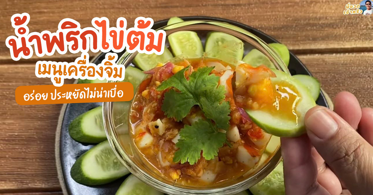 น้ำพริกไข่ต้ม เมนูเครื่องจิ้มรสเผ็ด กลิ่นหอมเครื่องสมุนไพรไทย กินกับข้าวสวย ผักสด หรือผักลวก อร่อยมาก ไข่ต้ม เมนูไข่ แค่กินกับพริกน้ำปลาก็อร่อย แต่ถ้าอยากเติมความแซ่บจับมาทำเมนูน้ำพริกไข่ต้ม อาหารไทย ใส่เครื่องโขลกจากสมุนไพรคั่ว ปรุงรสเผ็ด เปรี้ยว เค็ม ตามชอบ แกล้มกับผักต่าง ๆ หรือกินกับข้าวสวยอิ่มไปอีกมื้อ นำไข่ไก่ที่เพิ่งเอาออกมาจากตู้เย็นใส่ลงในหม้อต้ม แล้วเทน้ำสะอาดตามลงไปจนท่วม ให้สูงกว่าไข่ไก่ประมาณ 1 นิ้ว นำหม้อขึ้นตั้งไฟ ต้มจนน้ำเดือดถึงจุดสูงสุด ปิดไฟ พักทิ้งไว้ให้ความร้อนค่อย ๆ ซึมเข้าไปในไข่ไก่ โดยในขณะที่อุณหภูมิไข่ไก่เพิ่มขึ้น อุณหภูมิของน้ำก็จะลดลง เคล็ดลับ : ในครั้งต่อ ๆ ไปหากต้องการไข่ต้มแบบเดิมในสูตรเดียวกันนี้ ควรจะใช้ไข่ไก่เบอร์เดียวกัน น้ำต้มในปริมาณที่เท่ากัน ในหม้อและความร้อนที่ระดับเดิมด้วย ไข่ต้มสุก กระเทียม หอมแดง พริกแดง มะนาว น้ำปลา น้ำตาลมะพร้าว 1. ตั้งกระทะใช้ไฟอ่อน ใส่พริก กระเทียม และหอมแดง ลงไปคั่วจนสุกหอม 2. หั่นไข่ต้มตามชอบ เตรียมไว้ 3. นำพริก กระเทียม และหอมแดง ลงโขลก 4. โขลกให้แหลกพอหยาบ 5. ปรุงรสด้วยน้ำปลา น้ำตาลมะพร้าว และน้ำมะนาว คลุกเคล้าให้เข้ากัน เสร็จแล้วใส่ไข่ต้มลงไปได้เลย 6. คลุกเคล้าให้เข้ากันอีกครั้ง 7. ตักใส่จาน แค่นี้ก็พร้อมเสิร์ฟ 8. จะกินกับข้าวสวย ผักสด หรือผักต้ม ก็อร่อยมาก นอกจากนี้เรายังมีเมนูน้ำพริกยอดฮิตอื่น ๆ มาแนะนำให้เพื่อน ๆ ลองทำตามกันดู เป็นอาหารไทยที่สามารถกินเพื่อลดน้ำหนักได้ด้วย แต่ละเมนูน่าสนใจมากเลยค่ะ น้ำพริกตาแดง เครื่องจิ้มอร่อยครบรส ทำกินได้ทำขายสร้างอาชีพ น้ำพริกแจ่วปลาร้าพริกป่น หอมหวนรสแซ่บเอาใจคนชอบปลาร้า น้ำพริกปลากระป๋อง เมนูง่าย ๆ อร่อยแซ่บนัว น้ำพริกอ่อง สูตรแม่ทำกินง่าย ๆ ใส่เต้าเจี้ยวสไตล์คนไกลบ้าน น้ำพริกเผา สูตรใส่กุ้งแห้งหอมอร่อยเผ็ดร้อนสไตล์โฮมเมด 8 เมนูน้ำพริกกะปิ หลากสูตรอร่อยในถ้วยเดียว 3 สูตรน้ำพริกกากหมู เมนูสร้างอาชีพ กรอบกรุบอร่อยแซ่บเบา ๆ มื้อต่อไปเตรียมโขลกน้ำพริกไข่ต้มสักครก ใส่พริกตามชอบ กินกับข้าวสวย ผักสด และถ้ามีหมูทอดหรือไก่ทอดยิ่งฟินเลย ► 15 สูตรน้ำพริกทำขาย เมนูสร้างอาชีพ ขายง่ายได้กำไร ► 14 สูตรน้ำพริกคลีน อาหารเย็นไม่อ้วนชวนมากินน้ำพริก ► 4 สูตรน้ำพริกปลาทู อาหารไทยเติมโปรตีน รสแซ่บหอมอร่อยจิ้มเพลิน ► 11 สูตรน้ำพริกแห้ง เมนูสร้างอาชีพ เก็บไว้ขายไว้กินอร่อยนาน ► 13 สูตรข้าวน้ำพริก เมนูสร้างอาชีพ ทำง่ายขายคล่อง ขอบคุณข้อมูลและภาพจาก : คุณพี่ขวดเข้าครัว และ เฟซบุ๊ก พี่ขวดเข้าครัว