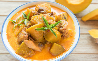 แกงฟักทองไก่ เมนูแกงกะทิสไตล์ไทย สีสวยหอมพริกแกง ใส่เนื้อไก่และใบโหระพา ปรุงรสเค็มหวานตามชอบได้เลย แกงฟักทองไก่ อาหารเมนูแกงกะทิ ใส่ฟักทอง ผักพื้นบ้านต้มจนนุ่ม เติมโปรตีนจากไก่ โดยใช้เฉพาะเนื้อหรือชิ้นส่วนไก่มีกระดูกก็ได้ หรือจะเปลี่ยนเป็นหมูสามชั้น หมูชิ้น หรือกระดูกหมู ใครอยากลองทำแกงไทยมาส่องสูตรกันเลย อุดมไปด้วยวิตามินเอ ช่วยบำรุงสายตา ป้องกันโรคเกี่ยวกับดวงตา มีวิตามินซี ช่วยผลิตคอลลาเจน ช่วยให้ผิวพรรณเปล่งปลั่ง ปกป้องผิวไม่ให้เหี่ยวย่นตามวัย มีกากใยสูง ช่วยในการขับถ่าย มีแคลอรีและไขมันต่ำ เหมาะกับผู้ที่ต้องการลดความอ้วนและลดน้ำหนัก มีเบต้าแคโรทีนซึ่งเป็นสารต้านอนุมูลอิสระ ช่วยเสริมสร้างระบบภูมิคุ้มกันให้แก่ร่างกาย ช่วยลดการเกิดมะเร็ง โรคหลอดเลือดหัวใจ และโรคหัวใจ ควรเลือกฟักทองแก่เนื้อแน่น เคาะที่เปลือกแล้วเสียงทึบ ตัน ถ้าเคาะแล้วเสียงดังเปราะแสดงว่าเนื้ออ่อน หรือใช้เล็บจิกลงไป ถ้ามียางเยิ้มและติดเล็บแสดงว่าฟักทองแก่ เหมาะเอามาทำอาหาร เปลือกของฟักทองไม่ควรมีแผลที่ผิว มีสีเขียวผสมเหลือง มีผิวขรุขระ เปลือกแข็ง เนื้อฟักทองผ่าออกมาแล้วมีสีเหลืองหรือเหลืองอมส้ม (แล้วแต่สายพันธุ์) น้ำพริกแกงเผ็ด 2 ช้อนโต๊ะ กะทิ 400 มิลลิลิตร เนื้ออกไก่ 1/2 ถ้วย เกลือ เล็กน้อย น้ำปลา 1 ช้อนชา ซอสปรุงรส 2 ช้อนชา ซีอิ๊วขาว 2 ช้อนโต๊ะ น้ำตาลมะพร้าว 2 ช้อนชา ฟักทองหั่นชิ้น 500 กรัม พริกชี้ฟ้า (สำหรับแต่ง) ใบโหระพา 1 ถ้วย ตั้งกระทะใส่หัวกะทิและพริกแกงลงไปผัดจนหอมและกะทิแตกมัน ใส่เนื้อไก่ลงไปผัดพอสุก ปรุงรสตามชอบ ใส่ฟักทองลงไป ตามด้วยพริกชี้ฟ้าและใบโหระพา เติมน้ำพอท่วม เคี่ยวจนฟักทองสุกและกะทิเดือด ปิดไฟ แกงฟักทองใส่ไก่ อาหารไทยรสเข้มข้นหอมเครื่องแกง ทำหม้อเดียวแบ่งกินได้หลายมื้อ 4 เมนูแกงฟักทอง ทั้งคาวหวานอร่อยทำเองได้ทุกวัน ผัดฟักทองใส่ไข่ เมนูฟักทองแห้ง ๆ พร้อมเทคนิคผัดฟักทองไม่เละ ซุปฟักทองขนมปังกระเทียม อาหารฝรั่งง่าย ๆ อิ่มท้องรับมื้อเช้า แพนเค้กฟักทอง สูตรไร้แป้งไม่ใส่ไข่และน้ำตาล อร่อยนุ่มสุดเฮลธ์ตี้ สังขยาฟักทองไข่เป็ด ขนมไทยซ่อนไส้หวานละมุนทำขายได้