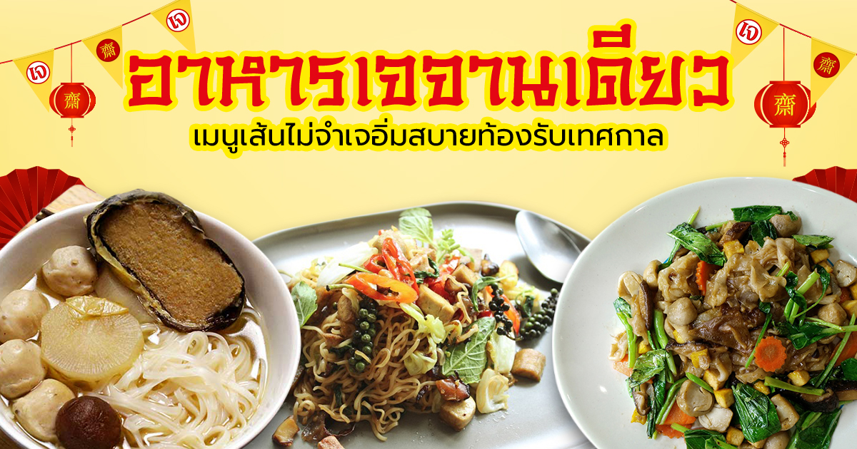 แจกเมนูอาหารเจจานเดียว อิ่มอร่อยกับเมนูเส้นไม่จำเจ มีทั้งก๋วยเตี๋ยวผัดแห้ง และก๋วยเตี๋ยวน้ำ ทำกินเองจัดเครื่องเคราแน่น ๆ อิ่มฟินแน่นอน เทศกาลกินเจ ใครอยากทำอาหารเจ อาหารจานเดียว ที่ไม่ใช่เมนูข้าว ลองมาทำเมนูเส้นกันดีไหม เช่น ก๋วยเตี๋ยวหลอดเจ มาม่าผัดขี้เมาเจ ผัดซีอิ๊วเจ ผัดหมี่ฮ่องกงเจ เป็นต้น ลองเลือกเลยอร่อยทุกเมนู การกินเจตั้งมั่นอยู่บนหลักธรรมสำคัญ 2 ประการ การดำรงชีวิตอยู่ด้วยอาหารที่ไม่เบียดเบียนผู้อื่น คือ ไม่เอาชีวิตของสัตว์ทั้งหลายมาต่อเติมบำรุงเลี้ยงชีวิตของตน, ไม่เอาเลือดของสัตว์ทั้งหลายมาเป็นเลือดของตน และไม่เอาเนื้อของสัตว์ทั้งหลายมาเป็นเนื้อของตน การดำรงชีวิตอยู่ด้วยอาหารที่ไม่เบียดเบียนตนเอง คือ จะกินสิ่งใดเข้าไปต้องไม่ทำให้ร่างกายทรุดโทรมเท่ากับเป็นการเบียดเบียนตนเอง ดังนั้น จึงมีการห้ามของมึนเมา สารเสพติด ขณะที่วิทยาศาสตร์ได้พิสูจน์ยืนยันว่า เลือดและเนื้อของสัตว์ที่ถูกฆ่าตายเต็มไปด้วยพิษภัยมากมาย เนื้อสัตว์เหล่านี้จึงจัดเป็นพิษชนิดหนึ่งเช่นกัน การละเว้นจึงส่งผลดีต่อร่างกายอีกด้วย การล้างท้องก่อนกินเจ คือ การกินเจก่อนถึงวันเทศกาลเจจริงประมาณ 1-2 วัน โดยส่วนมากจะนิยมล้างท้องก่อนกินเจจริง ๆ 1 วัน เพื่อชะล้างเนื้อสัตว์หรืออาหารคาวต่าง ๆ ที่ตกค้างอยู่ในร่างกายออกให้หมดสิ้น เมื่อถึงวันถือศีลกินเจ ร่างกายจะได้สะอาด พร้อมถือศีลกินเจตามประเพณี ข้อห้ามในการกินเจ งดเว้นเนื้อสัตว์ และห้ามทำอันตรายต่อสัตว์ งดนม เนย และน้ำมันที่มาจากสัตว์ งดอาหารรสจัด ทั้งอาหารเผ็ด หวานจัด เปรี้ยวจัด เค็มจัด งดผักหรือเครื่องเทศที่มีกลิ่นแรง เช่น กระเทียม หัวหอม ต้นหอม หลักเกียว (กระเทียมโทนจีน) กุยช่าย รวมทั้งใบยาสูบ และของมึนเมาต่าง ๆ เพราะผักดังกล่าวนี้เป็นผักที่มีรสหนัก กลิ่นเหม็นคาวรุนแรง นอกจากนี้ยังมีพิษคอยทำลายพลังธาตุทั้งห้าในร่างกาย เป็นเหตุให้อวัยวะหลักสำคัญภายในทั้งห้าทำงานไม่ปกติ ไม่ใช้จานชามปะปนกัน และต้องกินอาหารที่คนกินเจด้วยกันเป็นผู้ปรุงขึ้นมา (สำหรับคนที่เคร่ง) งดดื่มสุราและของมึนเมาทุกชนิด ห้ามดับตะเกียงในสถานที่กินเจทั้ง 9 ดวง เพราะเป็นสัญลักษณ์ของเก้าฮ้วงฮุดโจ้ว ซึ่งต้องจุดไว้ตลอดทั้งวันทั้งคืนจนกว่าจะจบพิธีกินเจ และหากตะเกียงดับก็จะถือว่าไม่เป็นสิริมงคล รวมทั้งการกินเจก็จะไม่สมบูรณ์ด้วย เส้นหมี่ซั่ว (นำไปลวกแล้ว) 300-500 กรัม ผักรวมตามชอบ เห็ดหอมหั่น (แช่น้ำก่อน) 5-6 ดอก โปรตีนเกษตรเจ (แช่น้ำแล้ว) 200 กรัม ซีอิ๊วขาว 2 ช้อนโต๊ะ ซอสเห็ดหอมเจ 2 ช้อนโต