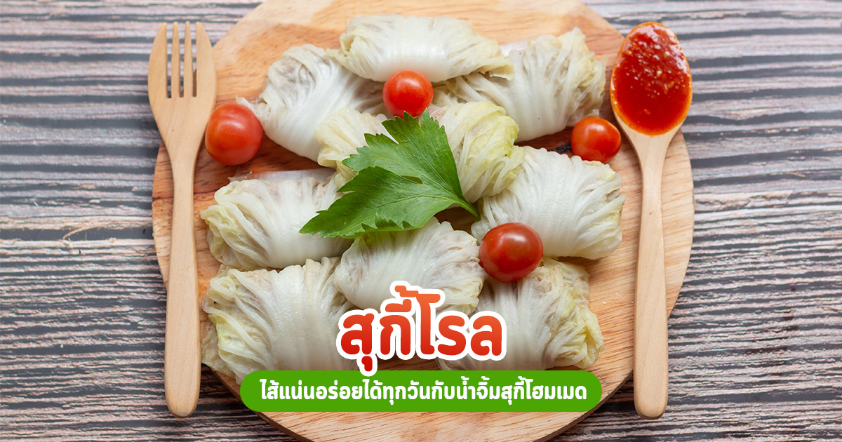สุกี้โรล ไส้หมูสับวุ้นเส้นกับผักสีสวย ขนาดพอดีคำ เข้ากันดีกับน้ำจิ้มสุกี้รสเด็ด จะทำกินเองหรือทำขายเลือกเอาได้เลย สุกี้ อาหารเพื่อสุขภาพก็กินบ่อยแล้ว ลองจับมาแปลงร่างเป็นสุกี้โรลกันดีไหม สอดไส้หมูสับแน่น ๆ ห่อด้วยใบผักกาดขาว กินกับน้ำจิ้มสุกี้งาขาว บอกเลยว่าฟิน สุกี้โรล เมนูสุกี้แห้งประยุกต์ด้วยการม้วนโรลทำให้กินง่ายขึ้น ส่วนผสมจะใส่หมูบด หมูเด้ง ไก่สับ หรือกุ้งสับ รวมทั้งอาจทำไส้มังสวิรัติก็ได้เช่นกัน และใส่ผักสารพัด เช่น แครอต เห็ดเข็มทอง วุ้นเส้น ต้นหอม เป็นต้น ห่อด้วยใบผักกาดขาว หมูสับ หรือหมูบด 400 กรัม วุ้นเส้นแห้งแช่น้ำ หั่นสั้น 100 กรัม กระเทียม พริกไทยเม็ด รากผักชีโขลก ไข่ไก่ 2 ฟอง แป้งมัน 2 ช้อนโต๊ะ น้ำมันหอย 4 ช้อนโต๊ะ ซีอิ๊วขาว 2 ช้อนโต๊ะ น้ำตาลทราย 1 ช้อนโต๊ะ น้ำมันงา 2 ช้อนโต๊ะ แครอตหั่นเต๋า เห็ดหอมหั่นเต๋า หรือเห็ดตามชอบ ใบผักกาดขาว ใบขึ้นฉ่าย กระเทียมดอง 2 ช้อนโต๊ะ พริกชี้ฟ้าแดง 5 เม็ด เต้าหู้ยี้ 2 ก้อน ซอสพริก 200 กรัม น้ำส้มสายชู 2 ช้อนโต๊ะ ซอสมะเขือเทศ 50 กรัม ซีอิ๊วขาว 2 ช้อนโต๊ะ น้ำตาลทราย 4 ช้อนโต๊ะ งาขาวคั่วบุบ น้ำมันงา 2 ช้อนโต๊ะ ผักชีซอย ผักชีฝรั่งซอย โขลกกระเทียมดอง พริกชี้ฟ้าแดง และเต้าหู้ยี้จนละเอียด พักไว้ ตั้งกระทะใช้ไฟอ่อน ใส่ซอสพริก ซอสมะเขือเทศ ส่วนผสมพริกโขลก ปรุงรสด้วยน้ำส้มสายชู ซีอิ๊วขาว น้ำตาลทราย คนจนเดือดและข้นตามชอบ ปิดไฟ เพิ่มความหอมจากน้ำมันงาและงาขาวคั่วบุบ คนจนเข้ากัน ตักใส่ถ้วย โรยผักชีและผักชีฝรั่ง ใส่หมูสับลงอ่างผสม ตามด้วยแป้งมัน สามเกลอ วุ้นเส้น เห็ดหอม และแครอต ปรุงรสด้วยซอสหอยนางรม ซีอิ๊วขาว น้ำตาลทราย และน้ำมันงา คลุกเคล้าให้เข้ากัน หมักไว้ประมาณ 30 นาที ตั้งน้ำร้อน รอจนเดือด ใส่ผักกาดขาวลงไปลวกจนนิ่ม นำขึ้นมาใส่น้ำเย็นสักครู่ เสร็จแล้วนำขึ้นมาพักไว้ให้สะเด็ดน้ำ ตักส่วนผสมหมูวางลงบนใบผักกาดขาว แต่งด้วยใบขึ้นฉ่าย ม้วนให้สวยงาม วางลงบนซึ้งนึ่ง ใช้ไฟกลางนึ่งประมาณ 15 นาที พอสุกใส่ภาชนะ เสิร์ฟพร้อมน้ำจิ้ม จบไปแล้วสำหรับวิธีทำสุกี้โรล จเปลี่ยนจากหมูสับเป็นไก่สับ กุ้งสับ หรือไส้อื่น ๆ ก็ได้ตามชอบ ลองทำดูไม่ยากเลยจ้า สุกี้แห้ง สุกี้น้ำรวมมิตร จานเด็ดพร้อมวิธีหมักเครื่องรสเลิศ วิธีทำสุกี้แห้ง สูตรทำง่าย ๆ พร้อมเคล็ดลับเด็ด สุกี้โบราณ เครื่องแน่นพร้อมสูตรหมักเนื้อสัตว์กับน้ำจิ้มรสเด็ด แจกสูตรน้ำซุปสุกี้เจ้าดัง พร้อมสูตรน้ำจิ้ม เหมือนไม่เป๊ะ แต่ฟีลลิ่งมาเต็ม วิธีทำสุกียากี้ญี่ปุ่นโฮมเมด สูตรน้ำซุปดำอร่อยคุ้มค่าน่าโดน