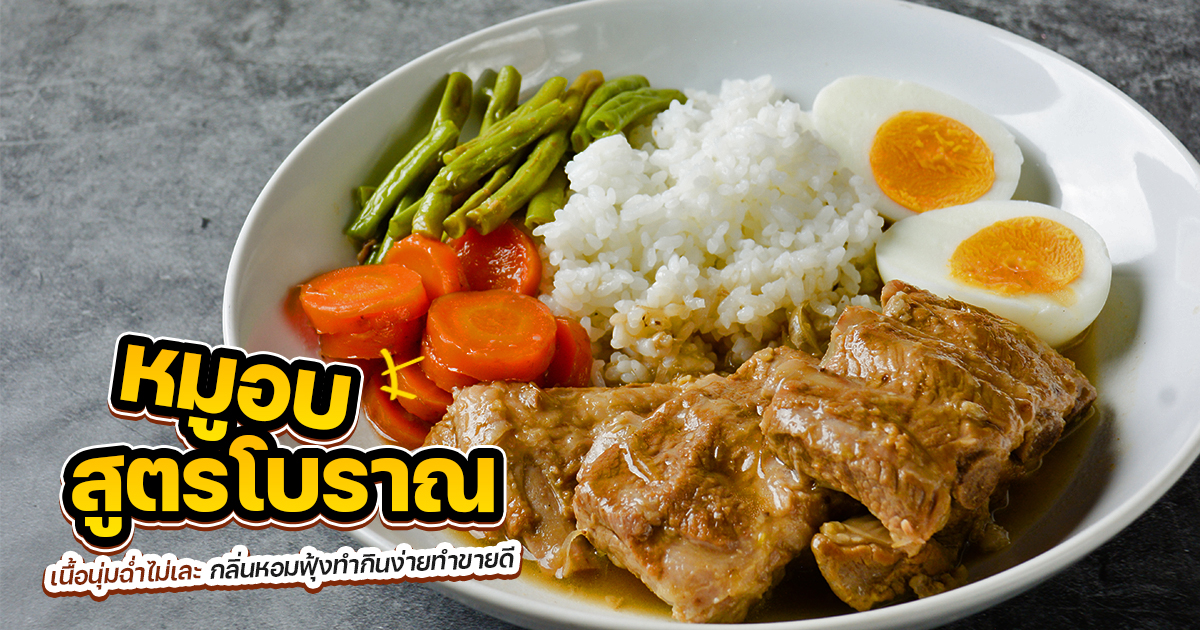 หมูอบสูตรโบราณ เนื้อนุ่มฉ่ำหอมกลิ่นสามเกลอ รสชาติกลมกล่อมแบบไทย มาพร้อมวิธีเลือกซื้อเนื้อหมูสด หมูอบสไตล์ฝรั่งอย่างหมูอบซอส ทำกินบ่อยก็เบื่อ ลองเปลี่ยนมาทำหมูอบสูตรโบราณ อาหารไทยบ้างดีไหม ส่วนผสมที่ขาดไม่ได้เลยคือ สามเกลอ และเครื่องปรุงรสต่าง ๆ พอทำเสร็จบอกเลยว่านุ่มมาก เนื้อฉ่ำ กินกับข้าวสวยอิ่มไปอีกมื้อ หมูอบสามารถใช้หมูได้ทุกส่วน ถ้าต้องการความฉ่ำเลือกใช้ส่วนสันคอหรือสะโพก เพราะมีไขมันแทรก ถ้าชอบมันน้อยหน่อยสามารถเลือกส่วนสันนอก ถ้าไม่ชอบมันเลยเลือกส่วนสันใน ถ้าชอบแทะเลือกส่วนกระดูกอ่อน เนื้อหมูส่วนที่ชอบ 1 กิโลกรัม พริกไทยเม็ด 2 ช้อนโต๊ะ กระเทียม 10 กลีบ รากผักชี 5 ราก น้ำมันพืช 1 ช้อนโต๊ะ น้ำเปล่า ซีอิ๊วขาว 3 ช้อนโต๊ะ ซอสปรุงรส 1 ช้อนโต๊ะ น้ำตาลมะพร้าว 1 ช้อนโต๊ะ ซอสหอยนางรม 2 ช้อนโต๊ะ ซีอิ๊วดำ 1 ช้อนโต๊ะ โขลกสามเกลอจนละเอียดใส่อ่างผสม เติมซอสหอยนางรมและน้ำมันพืชเพิ่มความชุ่มฉ่ำ ใส่หมูลงไปหมักประมาณ 1 ชั่วโมง โดยใส่ตู้เย็นไว้ ตั้งหม้อใช้ไฟกลาง ใส่น้ำมันลงไปเล็กน้อย ใส่หมูลงไปย่างพอผิวด้านนอกสุกเหลืองทั้งสองด้าน เพื่อกักความชุ่มชื้นและเนื้อหมูไม่เละเวลาอบ เติมน้ำเปล่าลงไปกะพอท่วมหมู ปรุงรสด้วยซีอิ๊วขาว ซอสปรุงรส น้ำตาลมะพร้าว ซอสหอยนางรม และซีอิ๊วดำ ตุ๋นประมาณ 1 ชั่วโมง หรือจนสุกนุ่ม พอครบเวลาจัดเสิร์ฟ ใครมีเนื้อหมูเหลือ ๆ มาทำเมนูหมูอบสูตรโบราณสักมื้อดีไหม สูตรนี้นุ่มและฉ่ำมากเพราะมีเคล็ดลับเด็ด ถ้าอยากตัดเลี่ยนกินกับน้ำจิ้มแจ่วก็อร่อย ซี่โครงหมูบาร์บีคิว อาหารฝรั่งเลอค่า แบบโฮมเมดที่ใครก็ทำได้ ซี่โครงหมูอบน้ำจิ้มบ๊วย จับอาหารฝรั่งมาฟิวชั่นเป็นแบบไทย ๆ หมูสามชั้นอบน้ำปลา น้ำจิ้มแจ่ว เมนูอ้วนน้อย ๆ อร่อยล้ำ หมูสามชั้นอบซีอิ๊ว เมนูสุดอร่อย ที่ไม่เหมาะกันคนกินคลีน หมูสามชั้นอบกะปิ กลิ่นหอมแรงอร่อยแซ่บ อิ่มท้องเพิ่มพลังงาน