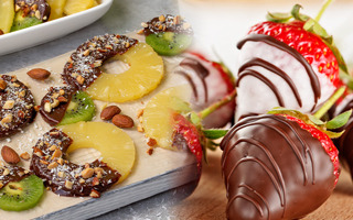 ผลไม้เคลือบช็อกโกแลต แปลงร่างผลไม้เป็นขนม วัตถุดิบน้อยและทำง่าย ใครอยากลองทำตามได้เลย ผลไม้ โดยเฉพาะผลไม้รสเปรี้ยว ถ้ากินเปล่า ๆ ก็เปรี้ยวเข็ดฟัน ลองทำเป็นขนมกันดีไหม วันนี้ขอแนะนำเมนูผลไม้เคลือบช็อกโกแลต อาจเลือกใช้สตรอว์เบอร์รี ราสป์เบอร์รี บลูเบอร์รี สับปะรด หรือกล้วยหอม ลองทำดูไม่ยากและสนุกด้วย ผลไม้สดตามใจชอบ ไวท์ช็อกโกแลต ดาร์กช็อกโกแลต ท็อปปิ้งอื่น ๆ ตามชอบ ล้างผลไม้ให้สะอาดและเช็ดให้แห้ง หั่นผลไม้เป็นชิ้นพอดีคำ หรือไม่หั่นก็ได้ นำช็อกโกแลตแต่ละชนิดไปละลายในไมโครเวฟแล้วคนให้ละลาย เตรียมไว้ นำผลไม้ที่เตรียมไว้ไปจุ่มลงในดาร์กหรือไวท์ช็อกโกแลตละลายจนทั่ว เสร็จแล้ววางบนถาด นำไปแช่แข็งประมาณ 10-15 นาที หรือจะจุ่มช็อกโกแลต 2 ชั้นก็ได้ ผลไม้เคลือบช็อกโกแลต สูตรขนมทำง่ายจากผลไม้ โดยเฉพาะผลไม้รสเปรี้ยวถ้าได้กินคู่กับช็อกโกแลตจะฟินมากเลย 9 สูตรเค้กช็อกโกแลตง่าย ๆ อร่อยเข้มหวานนุ่มเหมาะกับมือใหม่ ทีรามิสุช็อกโกแลตคัพ วัตถุดิบน้อยทำง่ายไม่ง้อเตาอบ 11 เมนูไวท์ช็อกโกแลต สูตรขนมและเครื่องดื่มอร่อยหวานละมุน บราวนี่ช็อกโกแลต เมนูขนมอบทำง่าย เนื้อฉ่ำเข้มข้น หอมอร่อยถูกใจสายหวาน โดนัทเค้ก สูตรไม่ทอด ราดซอสช็อกโกแลตฉ่ำ ๆ หอมนุ่มอร่อย
