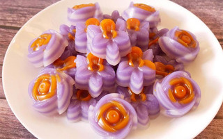 วิธีทำขนมชั้นดอกไม้ จับขนมไทยที่คุ้นเคยแปลงร่างให้ดูน่ารักน่ากินมากขึ้น ทั้งยังสามารถเพิ่มมูลค่าได้ด้วย ขนมชั้น สูตรขนมไทยโบราณสมัยปู่ย่าตาทวด โดยปกติหน้าตาจะเป็นชิ้นสี่เหลี่ยมและมีความหอมจากใบเตย แต่ถ้าใครอยากทำขายลองแปลงร่างเป็นรูปทรงอื่น ๆ บ้างดีไหม วันนี้เราขอแนะนำวิธีทำขนมชั้นดอกไม้ มีทั้งขนมชั้นดอกกล้วยไม้และขนมชั้นดอกกุหลาบ ทั้งนี้สามารถแปลงร่างเป็นดอกไม้อื่น ๆ ได้ตามชอบกันเลย ขนมชั้นดอกกุหลาบ สูตรนี้ใช้แป้งหลายชนิดนวดกับกะทิและน้ำเชื่อม จัดการแบ่งออกมาใส่สีผสมอาหารตามชอบ หยอดลงไปในพิมพ์ดอกไม้ นำไปนึ่งจนสุกและหยอดชั้นต่อไป ทำไปเรื่อย ๆ จนครบชั้นตามต้องการ แป้งมันสำปะหลัง 200 กรัม แป้งข้าวเจ้า 25 กรัม แป้งเท้ายายม่อม 25 กรัม กะทิ 750 กรัม น้ำตาลทราย 400 กรัม กลิ่นใบเตย 1 ช้อนชา สีผสมอาหารตามชอบ พิมพ์ซิลิโคนรูปดอกไม้ ทำน้ำเชื่อม ใส่กะทิ 200 กรัมลงในหม้อ เติมน้ำตาลทรายลงไป นำขึ้นตั้งไฟคนให้น้ำตาลละลาย ปิดไฟ พักไว้ให้เย็น ใส่แป้งมันสำปะหลัง แป้งข้าวเจ้า และแป้งเท้ายายม่อมลงอ่างผสม คนผสมให้เข้ากัน ค่อย ๆ เทกะทิที่เหลือลงไป กะปริมาณแค่พอให้นวดแป้งให้เป็นก้อนได้ นวดประมาณ 5 นาที เทกะทิที่เหลือทั้งหมดและน้ำเชื่อมลงไป คนผสมให้เข้ากัน กรองด้วยตะแกรงจนไม่มีเม็ดแป้ง เติมกลิ่นใบเตยลงไป คนผสมพอเข้ากัน แบ่งแป้งขนมชั้นเทใส่ถ้วย และหยดสีผสมอาหารลงไปตามชอบ คนผสมจนเข้ากัน ตั้งไฟลังถึงรอน้ำเดือด และนำพิมพ์ดอกไม้วางลงไปบนซึ้ง หยอดแป้งลงไป (จะหยอดสีเดียวหรือหลากสีก็ตามชอบ) นึ่งขนมชั้นละประมาณ 5 นาที หรือจนสุก หยอดจนครบจำนวนชั้นตามต้องการ พอสุกนำออกมาพักไว้พออุ่นหรือเย็นค่อยแกะออกจากพิมพ์ จัดเสิร์ฟ ขนมชั้นดอกกุหลาบอัญชัน จับแป้งนวดผสมกับกะทิ กลิ่นมะลิ และที่ขาดไม่ได้เลยคือ น้ำอัญชัน จากนั้นเทลงถาดทีละชั้นแล้วนำไปนึ่งจนสุก สุดท้ายหั่นชิ้นตามยาวแล้วม้วนพับกลีบทำเป็นรูปดอกกุหลาบ หัวกะทิ 2 ถ้วย น้ำตาลทราย 1 ถ้วย แป้งเท้ายายม่อม 1/8 ถ้วย แป้งข้าวเจ้า 1/4 ถ้วย แป้งมันสำปะหลัง 1 ถ้วย น้ำดอกอัญชันคั้นเข้มข้น กลิ่นมะลิ เล็กน้อย น้ำมันพืช (สำหรับทาถาด) ใส่กะทิลงในหม้อ นำขึ้นตั้งไฟ เติมน้ำตาลทรายลงไปคนให้เข้ากันจนละลาย ปิดไฟ พักทิ้งไว้จนเย็น ตักเอาหัวกะทิที่อยู่ด้านบนใส่ภาชนะเก็บไว้ ผสมแป้งเท้ายายม่อม แป้งมันสำปะหลัง และแป้งข้าวเจ้าในอ่างผสม ค่อย ๆ เทหัวกะทิใส่ลงไปทีละน้อยสลับกับใช้มือนวดแป้ง พอนวดจนแป้งเป็นก้อนแล้วนวดต่ออีก ประมาณ 15 นาที เทน้ำกะทิที่เหลือใส่ลงไป ตามด้วยกลิ่นมะลิ คนผสมให้เข้ากัน