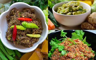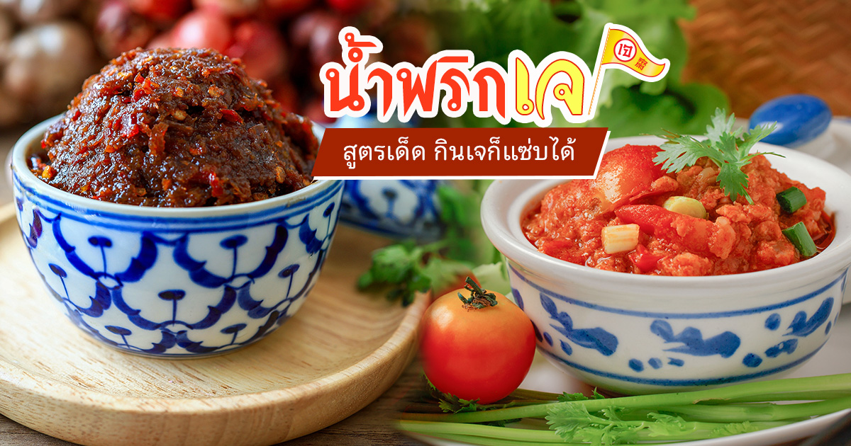 กินเจปีนี้ไม่มีเบื่อ เพราะเรามีสูตรเด็ด น้ำพริกเจ มาเสิร์ฟถึงที่ ไม่ว่าจะเป็นน้ำพริกเผาเจรสเข้ม หรือน้ำพริกเห็ดเจรสจัดจ้าน ทำเองง่าย ๆ ที่บ้านได้ แซ่บกว่านี้ไม่มีอีกแล้ว สวัสดีสายบุญ ! ช่วงเทศกาลกินเจทีไร หลายคนก็อาจจะเริ่มเบื่อกับเมนูเดิม ๆ หรืออาหารรสชาติจืด ๆ ใช่ไหมล่ะ ? บางคนก็อยากหาอะไรแซ่บ ๆ มาช่วยชีวิตให้เจริญอาหารขึ้นอีกหน่อย วันนี้เราขอเป็นผู้ช่วยกู้ชีพความอร่อยให้กับทุกคน ด้วยการแจก สูตรน้ำพริกเจ ที่ทำง่าย แถมยังรสชาติเด็ดดวงถึงใจ ไม่ต้องกลัวว่าจะจืดชืดเลย ! น้ำพริกเผา ทำเป็นเบสไว้ใช้เป็นเครื่องปรุงเมนูต่าง ๆ หรือจะใส่ในต้มยำเจก็แซ่บซี้ด หรือทาขนมปังเจเป็นมื้อเบา ๆ สบายท้องก็ได้ พริกป่น 1/2 ถ้วย เห็ดหอมแห้ง 10 ดอก เกลือ 1 ช้อนโต๊ะ น้ำตาล 2-3 ช้อนโต๊ะ ซอสเห็ดหอม 2 ช้อนโต๊ะ น้ำมะขามเปียก 1 ช้อนโต๊ะ น้ำมัน 1 ถ้วย นำเห็ดหอมแห้งไปแช่น้ำให้นิ่ม บีบน้ำออก สับให้ละเอียดพักไว้ ตั้งกระทะ ใส่น้ำมันลงไป นำเห็ดหอมลงไปผัดให้เหลืองกรอบ ใส่พริกป่นลงไป ตามด้วยเครื่องปรุงรส ผัดให้เข้ากัน ชิมรสตามชอบ ตักใส่ชามพักให้เย็นพร้อมกิน (ใช้ไฟอ่อนในการเคี่ยว ห้ามใส่น้ำลงไปเพราะจะทำให้เก็บได้ไม่นาน) น้ำพริกในตำนานที่คุ้นรสชาติกันมานาน กินเมื่อไหร่ก็แซ่บซี้ด โปรตีนเกษตรลูกเต๋า 500 กรัม พริกแห้ง (ป่น) 80 กรัม พริกชี้ฟ้าแห้ง(ป่น) 80 กรัม น้ำมะขามเปียก 5 ช้อนโต๊ะ เกลือป่น 1/2 ช้อนโต๊ะ น้ำตาลทราย 5 ช้อนโต๊ะ น้ำเปล่า 3 ช้อนโต๊ะ ผงปรุงรสเห็ดหอม 60 กรัม ตั้งกระทะ เทน้ำมันลงใช้ไฟแรง พอร้อนได้ที่ใส่โปรตีนเกษตรลงทอด จนเหลืองกรอบ แล้วตักใส่ตะแกรงพักไว้ นำโปรตีนเกษตรที่ทอดแล้วไปบด แล้วตักพักไว้ ตั้งกระทะ ใช้ไฟอ่อน ใส่พริกใหญ่ พริกจินดา น้ำมะขามเปียก น้ำตาลทรายลงไป ใส่ผงปรุงรสเห็ดหอม เกลือ ผงมะนาวลงไป คั่วไปเรื่อยๆ หากแห้งไปเติมน้ำเปล่าลงเล็กน้อย หมั่นคน เพื่อกันไม่ให้ไหม้ติดก้นกระทะ เมื่อคั่วจนเข้ากันได้ที่ ตักใส่ภาชนะ หรือแบ่งใส่กระปุกไว้ น้ำพริกมะขามเจรสชาติจัดจ้าน เปรี้ยวกำลังดี กินกับข้าวสวยร้อน ๆ อร่อยฟินแถมอิ่มบุญ มะขามอ่อน 200-250 กรัม เห็ดหอมแห้งแช่น้ำ 70 กรัม พริกจินดา 10 เม็ด พริกขี้หนูสวน 20 เม็ด น้ำตาลมะพร้าว 70 กรัม น้ำตาลทราย 70 กรัม เกลือป่น 30 กรัม แช่เห็ดหอมให้นิ่ม และล้างมะขาม พริก เตรียมไว้ นำมะขามอ่อนมาปั่นให้ละเอียด และ พริก เห็ด ปั่นเตรียมไว้ ตั้งกระทะ ใส่น้ำมันนิดหน่อย พอร้อนใส่เห็ดหอมที่ปั่นไว้ไปผัดให้หอม ตามด้วยพริก มะขาม เกลือ น้ำตาล โรยด้วยพริกขี้หนูสวนตามชอบ พร้อมเสิร์ฟคู่ผักสดหรือลวก ตามชอบ น้ำพริกเต้าหู้ยี้ สีสั