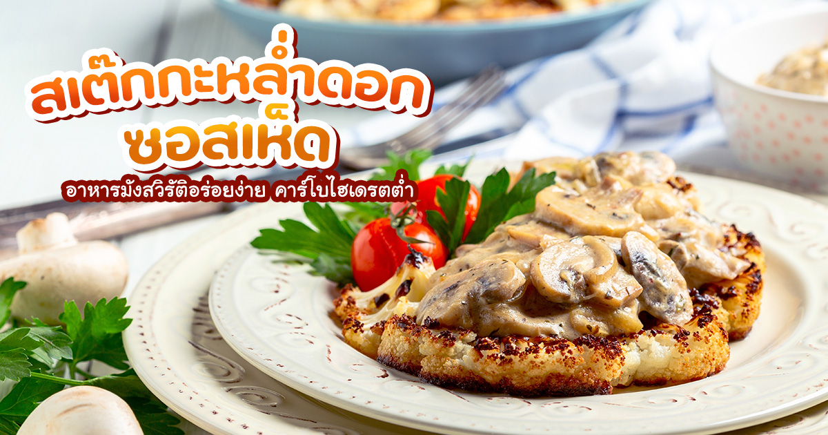 คนรักสเต๊กต้องลอง สเต๊กดอกกะหล่ำราดซอสเห็ด สุดครีมมี่ เมนูมังสวิรัติที่อร่อยไม่แพ้สเต๊กเนื้อ ทำง่าย ได้สารอาหารครบ แคลอรีต่ำ เหมาะกับทุกคนในครอบครัว วันนี้เรามีเมนูอาหารสุขภาพ สำหรับคนชอบกินมังสวิรัติ หรือใครที่อยากลดการกินเนื้อสัตว์ให้น้อยลง แต่ยังคงอยากได้ความอิ่มอร่อยเหมือนกินสเต๊กแบบเดิม ๆ นั่นก็คือ สเต๊กดอกกะหล่ำราดซอสเห็ด สมัยก่อนเวลาไปร้านอาหารฝรั่ง คนกินมังสวิรัติมักจะมีตัวเลือกจำกัด อาจจะเป็นแค่พาสต้าหรือริซอตโต้เห็ด แต่ตอนนี้มีเมนูใหม่ ๆ ที่น่าสนใจมากขึ้น โดยเฉพาะ สเต๊กดอกกะหล่ำ ที่แม้จะไม่ได้เหมือนสเต๊กเนื้อทุกอย่าง แต่รสชาติและเนื้อสัมผัสกลับทำให้หลายคนประหลาดใจและติดใจ เพราะดอกกะหล่ำเป็นผักที่มีเนื้อสัมผัสแน่นพอสมควร เมื่อนำไปอบหรือย่างจนคาราเมลไลซ์ จะได้รสชาติหวานละมุน หอมกรุ่น และมีกลิ่นหอมเฉพาะตัว ยิ่งเสิร์ฟคู่กับซอสเห็ดครีมมี่เข้มข้น รับรองว่าอร่อยจนคนไม่กินมังสวิรัติก็ต้องชอบแน่นอน ดอกกะหล่ำ 1 หัวใหญ่ (เลือกหัวแน่น ๆ สีขาวนวล) น้ำมันมะกอก 2-3 ช้อนโต๊ะ เกลือ ½ ช้อนชา พริกไทยดำ ½ ช้อนชา เครื่องเทศอื่น ๆ (ใส่เพิ่มเติม): ผงกระเทียม, ปาปริก้ารมควัน (ให้กลิ่นเหมือนเบคอน), ลูกจันทน์เทศป่น, ยี่หร่าป่น (ให้กลิ่นเหมือนเนื้อแกะ) 1. แบบครีมมี่ (ไม่วีแกน) เนยจืด 2 ช้อนโต๊ะ หัวหอมสับ ⅓ หัว กระเทียมสับ 1-2 กลีบ เห็ดแชมปิญองหั่นบาง 200 กรัม ครีมเปรี้ยว หรือวิปปิ้งครีม 1 ถ้วย ชีสบลูชีส หรือพาร์เมซาน 50-80 กรัม (เพิ่มความเข้มข้น) เกลือ พริกไทย ตามชอบ 2. แบบวีแกน (น้ำเกรวี่เห็ด) น้ำมันมะกอก 1 ช้อนโต๊ะ หัวหอมสับ ½ หัว กระเทียมสับ 2 กลีบ เห็ดหั่น 200 กรัม น้ำซุปผัก 1 ½ ถ้วย แป้งอเนกประสงค์ 1 ช้อนโต๊ะ (หรือแป้งข้าวโพดละลายน้ำ) ใบไทม์สด หรือเสจ 1-2 ก้าน เกลือ พริกไทย ตามชอบ อุ่นเตาอบ ที่อุณหภูมิ 200°C (400°F) และเตรียมถาดอบที่รองด้วยกระดาษรองอบ เตรียมกะหล่ำดอก ด้วยการเด็ดใบด้านนอกออก ตัดก้านที่ยื่นออกมาเล็กน้อยแต่ยังคงรักษาแกนกลางไว้ จากนั้นหั่นกะหล่ำดอกตามแนวตั้งเป็นชิ้นหนาประมาณ 1 นิ้ว ปรุงรส โดยใช้น้ำมันมะกอก เกลือ พริกไทย และเครื่องเทศอื่น ๆ (ถ้าใช้) เข้าด้วยกัน ทาให้ทั่วสเต๊กกะหล่ำดอกทั้งสองด้าน วางสเต๊กบนถาด อบประมาณ 30-40 นาที พลิกกลับด้านและทาน้ำมัน หรือซอสหมักอีกครั้งเมื่ออบไปได้ครึ่งทาง (ประมาณ 15-20 นาที) อบจนขอบเป็นสีน้ำตาลทองและนุ่ม เมื่อใช้มีดจิ้มตรงกลางได้ง่ายก็ถือว่าใช้ได้ เคล็ดลับ : ถ้าไม่มีเตาอบ สามารถใช้หม้ออบลมร้อน หรือทอดในกระทะได้ตามสะดวก 1. แบบครีมมี่ (ไม่วีแกน) ละลายเนย ผัดหัวหอมและกระเทียมให้หอม จากนั
