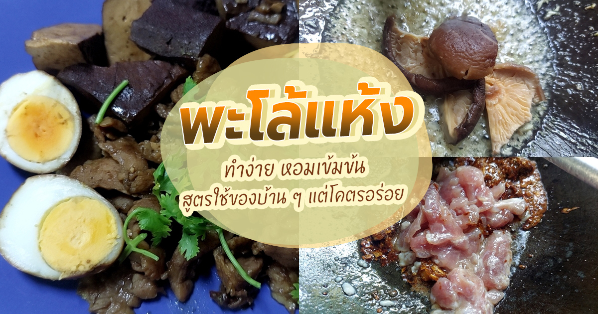 ใครว่าพะโล้ต้องมีน้ำ ? มาลอง พะโล้แห้ง กันเถอะ ! เมนูนี้เด็ดจริง เข้มข้น หอมกลิ่นพะโล้แบบตะโกน ทำง่าย ๆ ตามสูตรนี้เลย ปกติเราอาจจะคุ้นเคยกับพะโล้แบบน้ำใส ๆ ที่ออกเสียงแบบคนจีนทั่วไปว่า "พะโล้ว" ใช่ไหมล่ะ ? แต่เชื่อไหมว่า พะโล้ก็มีแบบที่ไม่เป็นแกงด้วยนะ มันคือการเอามาผัดให้แห้งและมีความเข้มข้นกว่าแบบน้ำมาก ส่วนใหญ่เขาจะเอาไปทำเป็นไส้ซาลาเปา หรือไส้พาย แต่วันนี้เราจะเอามาทำกินกับข้าวสวยร้อน ๆ นี่แหละ รสชาติบอกเลยว่า เข้มข้นไปอีกขั้น ไม่ได้บางเบาแบบที่เป็นแกงตามปกติ แต่รับรองว่าอร่อยไม่แพ้กันเลย สูตรนี้ได้แรงบันดาลใจมาจาก คุณ สมาชิกหมายเลข 1957648 เว็บไซต์พันทิปดอทคอม เลยนะ เห็ดหอมแห้ง (แช่น้ำให้นิ่มแล้วหั่น) เต้าหู้ดำ หั่นเป็นชิ้นสามเหลี่ยม ไข่ต้ม 2 ฟอง (คลุกซีอิ๊วดำเล็กน้อยเพื่อสีสวย) หมูหมักหรือนุ่มสำเร็จ / หมูสไลซ์ / หมูสามชั้นหั่นบาง รากผักชี + กระเทียม (ตำรวมกัน) พริกไทย น้ำมันสำหรับผัด น้ำตาลปี๊บ ผงพะโล้ ซีอิ๊วขาว น้ำสะอาดเล็กน้อย ผักชีสำหรับโรย พริกน้ำปลา (สำหรับเสิร์ฟคู่กัน) 1. เริ่มจากแช่เห็ดหอมให้นิ่ม พอนิ่มแล้วก็นำมาหั่นเป็นชิ้นพอคำ 2. เตรียมเต้าหู้ดำ หั่นเป็นชิ้นสามเหลี่ยมเล็ก ๆ พอดีคำ 3. ต้มไข่สัก 2 ฟอง พอไข่สุกดีแล้วก็นำมาปอกเปลือก แล้วนำมาคลุกกับซีอิ๊วดำทิ้งไว้เพื่อความสวยงามและสีสัน 4. ตำรากผักชีกับกระเทียม พอแหลกดีแล้วก็ตักขึ้นมา โรยพริกไทยลงไปคลุกให้ทั่ว จะได้หอมฉุย ๆ 5. เตรียมเนื้อหมู ถ้ามีหมูที่หมักไว้แล้วก็จะนุ่มแน่นอน แต่ถ้าไม่มีก็ใช้หมูสไลซ์ได้เลย หรือจะใช้หมูสามชั้นก็ได้ แต่หั่นบาง ๆ หน่อยนะ ไม่งั้นจะแข็ง ไม่อร่อย 6. ตั้งกระทะ ใส่น้ำมันลงไป พอน้ำมันร้อนแล้ว นำรากผักชีที่เตรียมไว้ลงไปเจียว ให้มีกลิ่นหอมฟุ้งขึ้นมา 7. ใส่เห็ดหอมลงไปผัด ตามด้วยน้ำตาลปี๊บ ผัดให้น้ำตาลละลายและออกสีน้ำตาลไหม้เล็กน้อย จะได้สีสวยและหอมหวาน 8. ใส่หมูลงไป เติมน้ำสะอาดลงไปนิดหน่อย แล้วผัดให้เข้ากัน 9. ใส่ผงพะโล้ลงไป ผัดให้เข้ากันทั่วทั้งกระทะ แล้วใส่เต้าหู้ดำลงไป ตามด้วยไข่ต้มที่คลุกซีอิ๊วดำไว้ 10. ชิมรสดูก่อน ปรุงรสเพิ่มเติมด้วยซีอิ๊วขาวนิดหน่อย ถ้าชอบหวานก็เพิ่มน้ำตาล ชอบเค็มก็เติมซีอิ๊ว ปรับตามใจชอบเลย 11. ผัดต่อจนน้ำงวดแห้งสนิท ให้เครื่องเทศเคลือบเนื้อหมูและเต้าหู 12. ก่อนตักขึ้นจาน อย่าลืมทำพริกน้ำปลาไว้ด้วย เพราะขาดไม่ได้เลยสำหรับเมนูนี้ 13. ตักพะโล้แห้งใส่จาน ผ่าไข่ให้ดูสวยน่ากิน โรยผักชีแต่งหน้าจาน ก็เสร็จเรียบร้อย พะโล้แห้ง เมนูนี้ทำง่ายมาก ๆ เลย แถมอร่อยสุด ๆ หมูหมักนุ่ม ๆ หอมเครื่องพะโล้ 