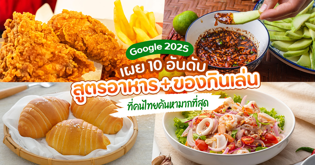 สรุปเทรนด์ สูตรอาหารและของทานเล่นสุดฮิต ปี 2025 ที่คนไทยค้นหาบน Google มากที่สุด พบว่าคือการผสมผสานเมนูไทยคลาสสิก กับของกินเล่นและเบเกอรี่สไตล์ญี่ปุ่น ปี 2025 คนไทยยังคงหลงใหลการทำอาหารกินเองที่บ้าน การค้นหาสูตรจาก Google จึงกลายเป็นแรงบันดาลใจสำคัญ ไม่ว่าจะเป็นเมนูใหม่สุดครีเอทีฟ หรือรสชาติดั้งเดิมที่คุ้นเคย หมวด สูตรอาหารและของทานเล่น ใน Google Year in Search 2025 เผยให้เห็นเทรนด์อาหารที่หลากหลาย ตั้งแต่สูตรลับในตำนาน ไปจนถึงเบเกอรี่และของว่างสุดฮิต มาดูกันว่า 10 เมนูใดที่ครองใจคนไทยและถูกค้นหามากที่สุดในปีนี้ โดยความน่าสนใจของลิสต์สูตรอาหารปีนี้อยู่ที่การรวมกันระหว่างเมนูไทยดั้งเดิม และเมนูฟิวชั่นที่กำลังมาแรง คนไทยไม่ได้สนใจแค่จานหลัก แต่ยังให้ความสำคัญกับเครื่องปรุง น้ำจิ้ม และรายละเอียดเล็ก ๆ เพื่อให้รสชาติอาหารสมบูรณ์ที่สุด ลิสต์นี้จึงเหมือนภาพรวมเทรนด์อาหารปี 2025 ที่สะท้อนความตั้งใจและความรักในการเข้าครัวของคนไทยได้ชัดเจน ลิสต์สูตรอาหารและของทานเล่นยอดฮิตใน Google Year in Search 2025 เป็นเครื่องพิสูจน์ว่าครัวไทยยังคงมีความคึกคักและเต็มไปด้วยความหลากหลาย ผู้คนไม่ได้หยุดอยู่แค่การทำอาหารจานหลัก แต่ยังให้ความสำคัญกับการทำเครื่องปรุงรสลับเฉพาะ และการเรียนรู้เมนูใหม่ ๆ จากทั่วโลกที่กำลังเป็นกระแสอีกด้วย ขอบคุณข้อมูลจาก : เว็บไซต์ Google