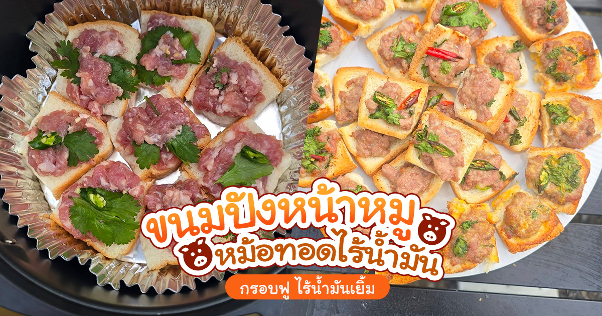 สูตรขนมปังหน้าหมูในหม้อทอดไร้น้ำมัน กรอบนอกนุ่มใน กินเพลินแบบไม่ต้องกลัวอ้วน มาพร้อมวิธีทำละเอียด น้ำจิ้มอาจาดเปรี้ยวหวานกลมกล่อม ถ้าพูดถึงเมนูของว่างไทย ๆ ที่กินกี่ทีก็ไม่เบื่อ เชื่อว่า ขนมปังหน้าหมู ต้องติดโผอันดับต้น ๆ แน่นอน ด้วยความกรอบของขนมปัง ผสมกับรสชาติกลมกล่อมของหมูสับปรุงรส กินคู่กับน้ำจิ้มอาจาดรสเปรี้ยวหวาน โอ้โห ! แค่นึกภาพก็น้ำลายสอแล้ว แต่ปัญหาใหญ่ของเมนูนี้ที่ทำให้หลายคนถอดใจ (โดยเฉพาะสายสุขภาพ) ก็คือ น้ำมัน เพราะปกติเราต้องเอาไปทอดในน้ำมันท่วม ๆ จนขนมปังซับน้ำมันเข้าไปเต็มคำ กินเสร็จทีไรแอบรู้สึกผิดทุกที ! แต่วันนี้ปัญหาเหล่านั้นจะหมดไป เพราะเรามีตัวช่วยอย่าง หม้อทอดไร้น้ำมัน (Air Fryer) ไอเทมคู่ใจเด็กหอและแม่บ้านยุคใหม่ วันนี้จะมาแชร์สูตรเด็ดจากคุณ Su Soontaree สมาชิกกลุ่มเฟซบุ๊ก รวมสูตรหม้อทอดไร้น้ำมัน ที่การันตีว่า ทำออกมาแล้วกรอบจริง ไม่ง้อน้ำมัน แถมทำง่ายสุด ๆ จะทำกินเล่นในครอบครัว หรือทำต้อนรับเพื่อนฝูงก็รับรองว่ามีแต่คนขอสูตร !สำหรับขนมปัง ขนมปังแผ่น เลือกชนิดตามชอบ (ตัดแบ่งเป็น 4 ส่วนต่อแผ่น) เคล็ดลับ: ควรตากลมให้แห้งสักพักก่อนทำ จะช่วยให้ขนมปังกรอบยิ่งขึ้น ไม่เละง่าย สำหรับหน้าหมู หมูสับ ประมาณ 300-500 กรัม (ปรับตามจำนวนขนมปังที่จะทำ) รากผักชี กระเทียม พริกไทย (โขลกละเอียดรวมกัน) ซีอิ๊วขาว 1-2 ช้อนโต๊ะ ซอสหอยนางรม 1 ช้อนโต๊ะ น้ำตาลทราย ½ ช้อนชา ผงปรุงรสเล็กน้อย (ใส่หรือไม่ใส่ก็ได้) ไข่ไก่ 1-2 ฟอง (ช่วยให้หน้าเกาะตัวกันดี สุกแล้วไม่หลุดลอก) สำหรับตกแต่ง พริกชี้ฟ้าแดงหั่นเส้น ใบผักชีสด สำหรับน้ำจิ้มอาจาด น้ำส้มสายชู 3 ช้อนโต๊ะ น้ำตาลทราย 3 ช้อนโต๊ะ เกลือ ½ ช้อนชา แตงกวาหั่นชิ้นเล็ก ๆ หอมแดงซอย พริกขี้หนูสับ 1. ตัดขนมปังแผ่นให้เป็น 4 ส่วน (ถ้าเป็นขนมปังสี่เหลี่ยมใหญ่ก็ตัดเป็นสามเหลี่ยมหรือสี่เหลี่ยมเล็ก ๆ ตามชอบ) จากนั้นนำไปตากลมในที่ร่ม ๆ สักประมาณ 15-30 นาที เพื่อให้ผิวขนมปังแห้งเล็กน้อย ขั้นตอนนี้สำคัญมาก เพราะจะช่วยให้ตอนอบขนมปังกรอบสวย ไม่เละเทะ 2. ใส่หมูสับลงในชาม ตามด้วยรากผักชี กระเทียม และพริกไทยที่โขลกละเอียดแล้ว เติมซีอิ๊วขาว ซอสหอยนางรม น้ำตาลทราย และผงปรุงรส ตอกไข่ไก่ลงไป 1-2 ฟอง แล้วใช้มือหรือช้อนคลุกเคล้าให้เข้ากันจนเนื้อหมูเนียนเป็นเนื้อเดียวกัน 3. ตักหมูสับที่หมักไว้แล้ว ทาลงบนขนมปังแต่ละชิ้น ควรทาให้ทั่วถึงขอบ แต่ไม่ต้องทาหนาจนเกินไป เพราะจะทำให้หมูสุกไม่ทั่วได้ ความหนาประมาณ 0.5-1 เซนติเมตรก็พอดี จากนั้นโรยพริกชี้ฟ้าแดงหั่นเส้นและใบผักชีด้านบนเพื่อตกแต่ง (กดเบา ๆ ให