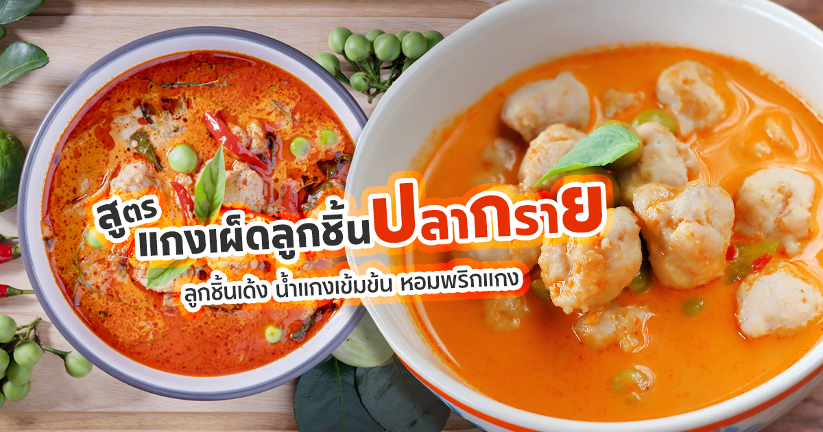 แจกสูตรแกงเผ็ดลูกชิ้นปลากรายแบบจัดเต็ม ลูกชิ้นปลากรายเด้ง หอมมันกะทิ เครื่องแกงเข้มข้น ทำกินเองง่าย อร่อยได้ทั้งบ้าน ถ้าพูดถึง เมนูแกงกะทิ ที่กินกี่ครั้งก็ไม่เบื่อ หนึ่งในนั้นต้องมีชื่อ แกงเผ็ดลูกชิ้นปลากราย ติดอันดับแน่นอน ความเด้งของลูกชิ้นปลากรายแท้ ๆ บวกกับน้ำแกงเผ็ดหอมมันกะทิ เครื่องแกงจัดจ้านนิด ๆ กินกับข้าวสวยร้อน ๆ หรือเส้นขนมจีน บอกเลยว่าหม้อเดียวไม่พอ วันนี้กระปุกดอทคอมเลยขอจัดเต็ม รวมสูตรแกงเผ็ดลูกชิ้นปลากรายมาให้ถึง 3 สไตล์ ไม่ว่าจะเป็นสูตรดั้งเดิม สูตรแกงแดงเข้มข้น และสูตรใส่เครื่องสมุนไพรจุก ๆ พร้อมเคล็ดลับการเตรียมปลาไม่ให้คาว จะทำกินเองที่บ้านหรือทำขายก็รับรองว่าลูกค้าติดใจแน่นอน ไปดูส่วนผสมและวิธีทำกันเลย สูตรนี้เหมาะสำหรับคนที่อยากได้ฟีลลูกชิ้นปลากรายแท้ ๆ แบบ Home-made เนื้อเหนียวหนึบสะใจ ส่วนผสม แกงเผ็ดลูกชิ้นปลากราย (สูตรโขลกเนื้อปลาเอง) เนื้อปลากรายขูด 250 กรัม หัวกะทิ ½ ถ้วยตวง / หางกะทิ 1+¾ ถ้วยตวง น้ำพริกแกงเผ็ด 2 ช้อนโต๊ะ มะเขือเปราะ 5 ลูก (ผ่าสี่) ใบโหระพา ½ ถ้วยตวง / ใบมะกรูด 4-5 ใบ / พริกชี้ฟ้าแดง 1 เม็ด น้ำปลา 1 ช้อนโต๊ะ น้ำตาลปี๊บ 1 ช้อนโต๊ะ เกลือป่น 1 ช้อนชา (สำหรับโขลกปลา) วิธีทำ แกงเผ็ดลูกชิ้นปลากราย (สูตรโขลกเนื้อปลาเอง) นวดเนื้อปลาให้เด้ง ด้วยการผสมน้ำเปล่า 1 ช้อนโต๊ะกับเกลือให้ละลาย ค่อย ๆ หยอดน้ำเกลือลงในเนื้อปลากรายขณะโขลก โขลกไปเรื่อย ๆ จนเนื้อปลาเหนียวหนึบติดสาก ตั้งน้ำให้เดือด ปั้นปลาเป็นก้อนพอดีคำลงไปต้ม พอสุกแล้วตักแช่น้ำเย็นจัดพักไว้ ตั้งน้ำมัน ผัดพริกแกงเผ็ดให้หอม เติมหัวกะทิลงไปผัดจนแตกมัน แล้วใส่ลูกชิ้นที่เตรียมไว้ลงไป เติมหางกะทิที่เหลือ รอให้เดือด ปรุงรสด้วยน้ำปลา น้ำตาลปี๊บ ชิมรสให้เค็มหวานนัว ๆ ใส่มะเขือเปราะลงไป พอเช็กว่ามะเขือเริ่มสุก ให้ใส่พริกชี้ฟ้า ใบมะกรูด และใบโหระพา ปิดไฟพร้อมเสิร์ฟ สูตรนี้เน้นความหอมของเครื่องแกงที่นำไปคั่วก่อน จะให้กลิ่นที่ลึกและรสชาติที่นัวกว่าเดิมส่วนผสม แกงเผ็ดลูกชิ้นปลากราย (สูตรหอมเครื่องคั่ว) ลูกชิ้นปลากราย 1 ถ้วย มะเขือเปราะลูกใหญ่ 5-6 ลูก ใบโหระพา 2-3 กำ (ใส่เยอะ ๆ หอมดี) เครื่องแกงคั่ว: พริกจินดา 3 เม็ด, หอมแดง 3 ลูก, กระเทียม 6-7 กลีบ, กะปิ ½ ช้อนชา, พริกแกงแดง 1 ช้อนโต๊ะ กะทิ 100 มล. เครื่องปรุง: น้ำตาลปี๊บ 1 ช้อนชา, ผงปรุงรส วิธีทำ แกงเผ็ดลูกชิ้นปลากราย (สูตรหอมเครื่องคั่ว) ปอกหอม กระเทียม หั่นพริก แล้วนำไปคั่วในกระทะให้เริ่มมีรอยไหม้เล็กน้อยเพื่อให้มีกลิ่นหอม จากนั้นนำมาโขลกรวมกับพริกแกงแดงและกะปิให้ละเอียด ตั้งกระทะไฟแรง คั
