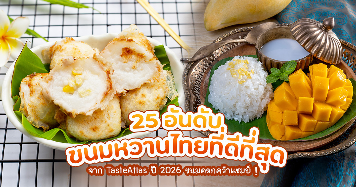 ส่อง 25 อันดับเมนูของหวานไทยที่โลกยอมรับปี 2026 จาก TasteAtlas เมื่อขนมครกแซงข้าวเหนียวมะม่วงขึ้นที่ 1 พร้อมเจาะลึก 10 อันดับแรกที่นักกินต้องลอง สายหวานมามุงด่วน ! ล่าสุด เว็บไซต์ TasteAtlas แพลตฟอร์มด้านอาหารชื่อดังระดับโลกที่ได้รับการยอมรับว่าเป็น "แผนที่อาหารโลก" ได้เปิดเผยอันดับเมนูของหวานที่ดีที่สุดของประเทศไทย ประจำปี 2026 (ข้อมูลอัปเดตถึง 15 กุมภาพันธ์ 2026) โดยรวบรวมคะแนนโหวตจากนักกินทั่วโลกผ่านระบบคัดกรองที่เชื่อถือได้ สิ่งที่น่าเซอร์ไพรส์สุด ๆ คือเมนูซิกเนเจอร์อย่าง ข้าวเหนียวมะม่วง ที่เราคิดว่าต้องที่หนึ่งแน่นอน กลับพ่ายให้ความเก๋าของขนมสตรีตฟู้ดริมทางอย่าง ขนมครก ไปแบบเส้นยาแดงผ่าแปด วันนี้เราเลยจะพาทุกคนไปส่อง 10 อันดับแรกว่ามีอะไรเด็ดบ้าง และรายชื่ออีก 15 เมนูที่เหลือมีอะไรติดโผมาบ้าง ไปดูกันเลย นอกจาก 10 อันดับแรก ยังมีเมนูที่ติดโผดังนี้ 11. ข้าวหลาม 12. ฝอยทอง 13. มะม่วงน้ำปลาหวาน 14. ข้าวเหนียวสังขยา 15. ขนมโตเกียว 16. สังขยาฟักทอง 17. ขนมต้ม 18. ข้าวเหนียวทุเรียน 19. ขนมตาล 20. ทองหยิบ 21. ดาราทอง 22. ข้าวหมาก 23. ทองม้วนสด 24. กระยาสารท 25. ขนมฝรั่งกุฎีจีน แต่ละเมนูล้วนสะท้อนเสน่ห์ความหลากหลายของของหวานไทย ทั้งแบบโบราณ งานมงคล ไปจนถึงสตรีตฟู้ดริมทางที่หากินง่ายและราคาเป็นมิตร การที่ ขนมครก ผงาดขึ้นมาเป็นอันดับ 1 ในปี 2026 แสดงให้เห็นว่าชาวต่างชาติไม่ได้มองหาแค่ความหวาน แต่ยังหลงใหลในเรื่องของ Texture หรือรสสัมผัสที่ซับซ้อน และความสมดุลของรสชาติที่ลงตัว รวมถึงเสน่ห์ของสตรีตฟู้ดไทยที่เข้าถึงง่าย เห็นแบบนี้แล้วเย็นนี้ต้องจัดขนมครกสักกล่องแล้วล่ะ 3 อาหารไทย ติดอันดับโลก 2025 พะแนง ข้าวซอย ต้มข่าไก่ การันตีความอร่อยระดับโลก Google ปี 2025 เผย 10 เมนูอาหารและของทานเล่น ที่ทุกคนพูดถึง ขอบคุณข้อมูลจาก : เว็บไซต์ TasteAtlas