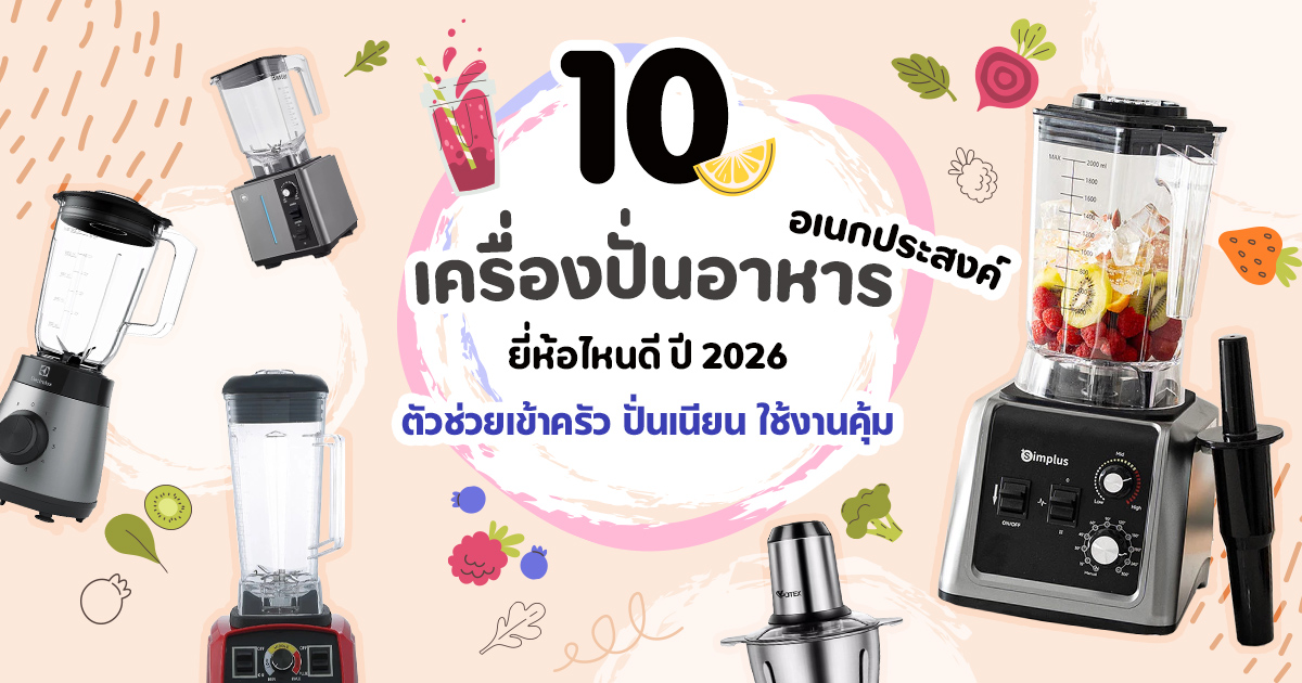 รวม 10 เครื่องปั่นอเนกประสงค์ ยี่ห้อดัง ปี 2026 พร้อมวิธีเลือกซื้อให้ตรงกับการใช้งาน ไม่ว่าจะปั่นสมูตตี้ บดหมู หรือปั่นซอส มีครบทุกโจทย์ในที่เดียว เชื่อว่าพ่อบ้าน-แม่บ้านหลายคนที่ชอบทำอาหารมักรู้ดีว่า การเข้าครัวแต่ละครั้งล้วนหมดเวลาไปกับการเตรียมวัตถุดิบต่าง ๆ ไม่ว่าจะเป็นการหั่น ปั่น สับ หรือบด เรียกได้ว่ากว่าจะทำเสร็จในแต่ละเมนู อาจต้องใช้เวลาเตรียมตัวเป็นชั่วโมง วันนี้เราจึงอยากจะมาแนะนำตัวช่วยทำครัวมือวางอันดับหนึ่ง ที่สามารถช่วยเตรียมวัตถุดิบให้พร้อมอย่าง เครื่องปั่นอเนกประสงค์ แต่เครื่องนี้จะช่วยอะไรได้บ้าง และมีวิธีเลือกซื้ออย่างไร เราไปดูกัน ! เครื่องปั่นอเนกประสงค์ (Food Processor / Blender) คือเครื่องใช้ไฟฟ้าที่ใช้พลังงานจากมอเตอร์ในการปั่นและบดวัตถุดิบ ให้ได้เนื้อสัมผัสที่ละเอียดตามต้องการ ฟังดูเหมือนจะเป็นแค่เครื่องปั่นธรรมดา แต่จริง ๆ แล้วมันทำได้มากกว่านั้น ทั้งปั่นซุป บดสมุนไพร ตีวิปครีม สับเนื้อ หรือแม้แต่บดเมล็ดกาแฟ ก็ทำได้หมด ปัจจุบัน เครื่องปั่นอเนกประสงค์ มีทั้งแบบพกพาขนาดเล็กที่เหมาะกับการอยู่คนเดียว และแบบโถขนาดใหญ่สำหรับครอบครัวหรือร้านอาหาร หลายรุ่นยังมีอุปกรณ์เสริมที่หลากหลาย ทำให้ใช้งานได้ยืดหยุ่นกว่าเดิมมาก โดยทั่วไป เครื่องปั่นอเนกประสงค์ แบ่งได้เป็น 3 ประเภทหลักตามลักษณะการใช้งาน ดังนี้ แบบมือถือ (Hand Blender / Immersion Blender) : ตัวเครื่องเป็นแท่งยาว ใช้จุ่มลงในหม้อหรือชามโดยตรง ไม่ต้องเทอาหารออกมาก่อน เหมาะกับการปั่นซุป ซอส หรือวัตถุดิบที่ไม่แข็งมาก ข้อดีคือสะดวก ล้างง่าย และเก็บพื้นที่ได้ดี แบบโถตั้งโต๊ะ (Countertop Blender) : ประเภทที่คุ้นเคยกันดีที่สุด มีโถปั่นพลาสติกหรือแก้วพร้อมฝาปิด ปั่นได้ทีละมาก เหมาะกับการทำอาหารปริมาณหลายคน หรือวัตถุดิบที่ต้องใช้แรงปั่นระดับกลาง แบบพลังสูง (High-Performance Blender) : รูปร่างคล้ายแบบโถ แต่มีกำลังมอเตอร์สูงกว่ามาก เหมาะกับการปั่นน้ำแข็ง สมูทตี้ หรือวัตถุดิบเนื้อแข็ง พบมากในร้านกาแฟหรือร้านน้ำปั่น ทำได้ทั้งคาวและหวาน ไม่ว่าจะแกงไทย ซอสพาสต้า หรือสมูทตี้ผลไม้ ลดเวลาเตรียมวัตถุดิบได้อย่างมาก บดสับพริกกระเทียมเสร็จภายในไม่กี่วินาที ทุ่นแรง ไม่ต้องโขลกหรือสับมือเองให้เมื่อย ใช้งานได้หลากหลาย ทั้งปั่น บด สับ ตี และผสม หลายรุ่นมาพร้อมอุปกรณ์เสริม เช่น โถบดแห้ง โถแยกสำหรับอาหารคาว-หวาน ดูที่ประเภทการใช้งาน : ก่อนอื่นต้องถามตัวเองก่อนว่าจะเอาไปทำอะไร ถ้าปั่นซุปหรือซอสบ่อย ๆ แบบมือถือก็เพียงพอ แต่ถ้าอยากปั่นสมูทตี้หรือน้ำแข็งด้วย ควรเลือกแบบโถที่ม