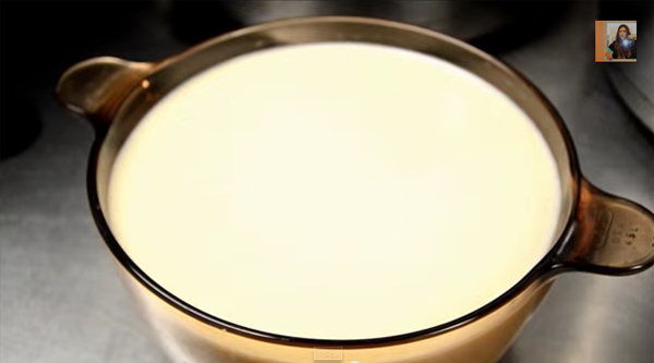 ► นำน้ำถั่วเหลืองขึ้นตั้งไฟต้มจนเดือดและมีฟอง (หมั่นคนผสมเรื่อย ๆ เพื่อไม่ให้ส่วนผสมไหม้) ปิดไฟ