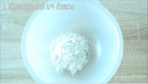 • แป้งสาลีอเนกประสงค์ 1/4 ถ้วย