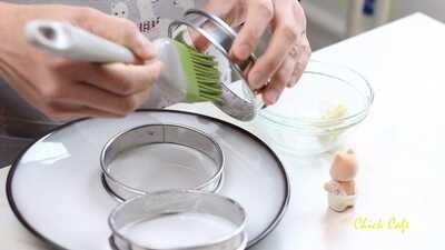 - พิมพ์วงกลมสำหรับทำขนมเส้นผ่าศูนย์กลาง 8.5 เซนติเมตร หรือพิมพ์วงกลมที่ใช้ทอดไข่ค่ะ หรืออาจจะใช้ปลากระป๋องตัดก้นกระป๋องกับฝากระป๋องทำเป็นพิมพ์ได้นะคะ ถ้าหาไม่ได้จริง ๆ ค่ะ