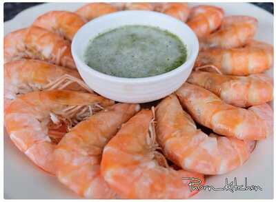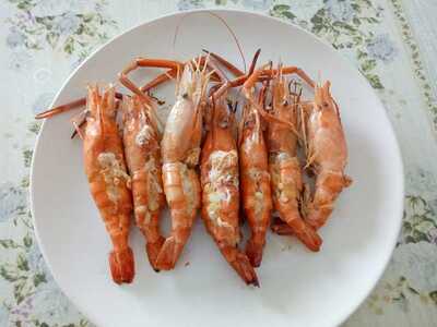 - วางกุ้งเรียงใส่กระทะหรือหม้อ โรยเกลือกับน้ำมันหอย ใส่ต้นหอม ปิดฝาอบ 3-5 นาที ใช้ไฟแรง เสิร์ฟกับน้ำจิ้มซีฟู้ด