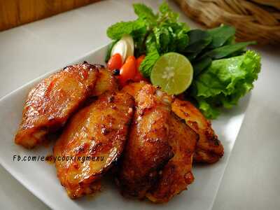 4. ทาซอสบาร์บีคิวลงไปบนปีกไก่ วางลงบนถาดแล้วนำไปอบประมาณ 30 นาที นำออกมาทาซอสบาร์บีคิวอีกครั้ง อบอีกครั้งประมาณ 10 นาที นำออกมาทาซอสอีกครั้งแล้วจัดวางลงจาน เสิร์ฟได้เลย