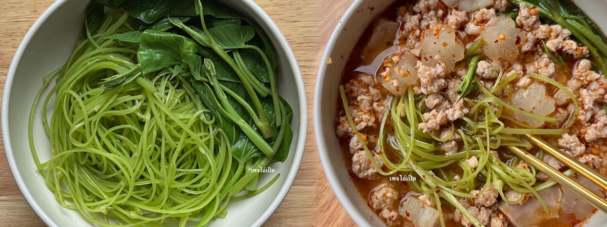 เมนูก๋วยเตี๋ยวเส้นผักบุ้ง