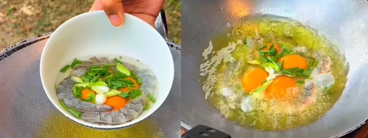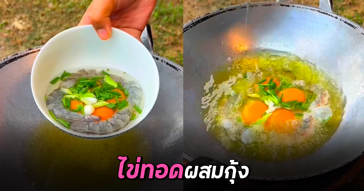 น่ากินเกินคาด เมื่อนำไข่กับกุ้งเทลงกระทะ เห็นแล้วถึงกับตักข้าวรอกินทันที