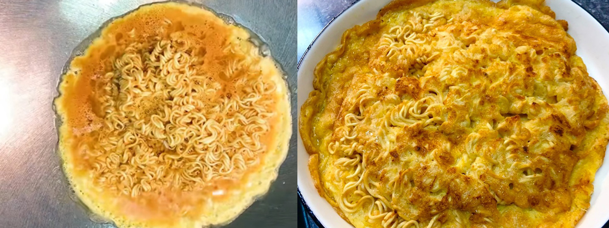 เฟซบุ๊ก Nuttapon Imjun ได้เผยภาพสาธิตการทำเมนูที่ทำให้ใครหลายคน หวนคิดถึงตอนที่ตัวเองยังเด็ก กับการเอาไข่เจียวมาผสมกับมาม่า จนกลายเป็นเมนูไข่เจียวมาม่า เริ่มแรกให้เอาเส้นมาม่าไปลวกกับน้ำร้อนก่อน จากนั้นเอาผงปรุงรสในซองเทใส่ไข่ แล้วคนให้เข้ากัน ต่อด้วยเทเส้นมาม่าที่ลวกแล้ว ลงในกระทะ แล้วตามด้วยไข่ทีหลัง ทำกินอร่อยง่าย ๆ ที่บ้านได้อย่างสบาย ๆ